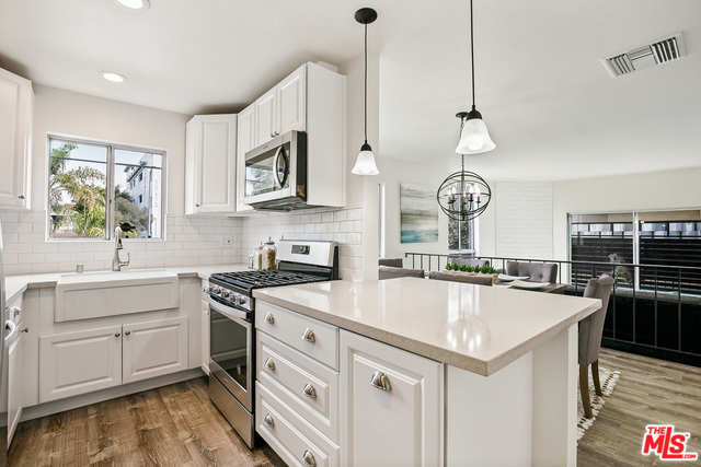 Beautifully renovated condo in the Carpenter School District in Colfax Meadows. The unit enjoys tons of natural lighting and a gorgeous open concept with a large living room, dining room, and kitchen, creating the perfect entertaining space. The updated kitchen hosts a full breakfast bar, quartz countertops, new cabinets, and stainless steel appliances. The living room offers sliding doors to a private patio. Step up to the dining room with bar and sink. The first of the 3 bedrooms is located on the first floor, making it an ideal space to hold your office, a playroom, or guest room. Upstairs, the master bedroom enjoys natural lighting, a patio, along with lots of closet space and a bathroom. The second upstairs bedroom is spacious and has 2 closets and a bathroom. Other amenities of this home include new flooring throughout, in-unit washer/dryer, and side-by-side parking. Don't miss this gorgeous condo right in the heart of Studio City close to shopping, transportation & more!