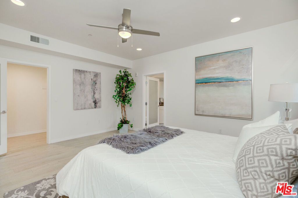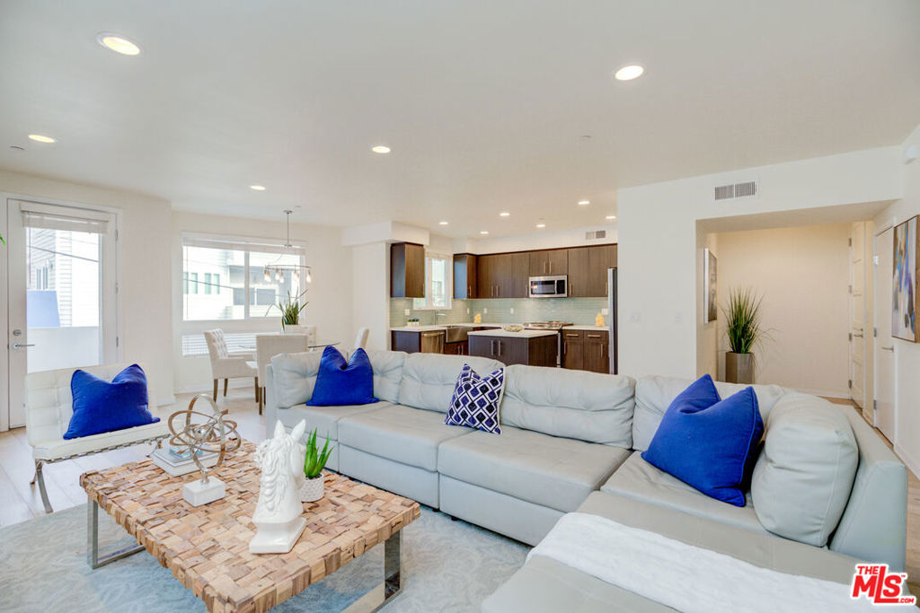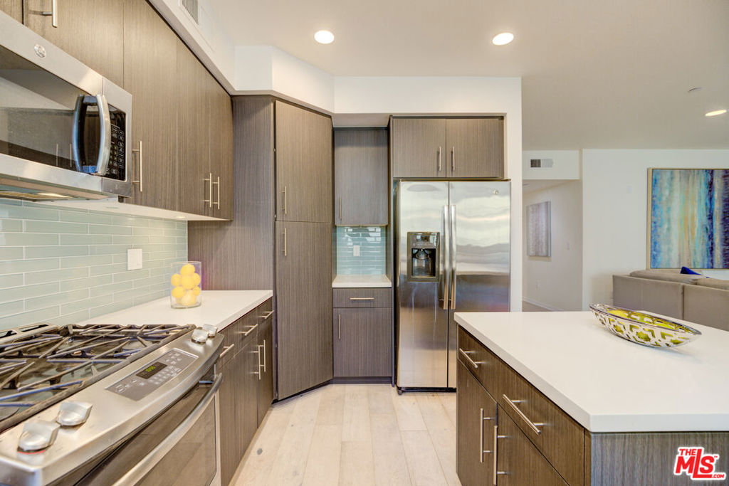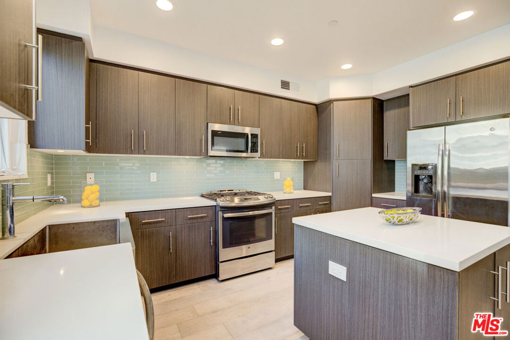 Located south of the blvd just minutes from the prestigious award winning Carpenter Community Charter elementary district, this amazing building features 9 custom designed modern style condos. This unit offers 1580 sq ft,3 beds, 2.5 baths of modern luxury living at its finest. Bright and welcoming with an open floor concept, a large cook's kitchen with an island, stainless steel appliances, and glass subway tile backsplash. Featuring wide plank wood floors throughout, LED lighting, as well as Caesarstone countertops in the kitchen and bathroom, including a washer and dryer in unit. The owner suite has a spa like bathroom with dual sinks, a standing shower, separate soaking tub, and a generous size walk-in closet. The spacious balcony and shared rooftop deck face the beautiful Santa Monica Mountains. Gated 2 car assigned parking spaces + guest parking.
