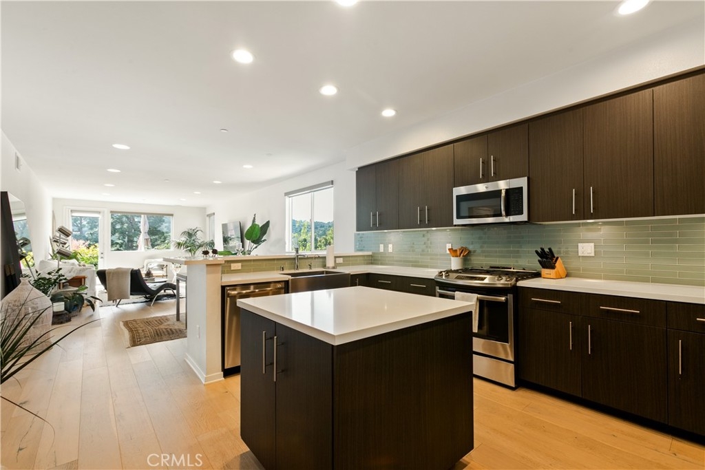 Sophisticated Luxury in Prime Studio City – Must See! Welcome to modern elegance in the exclusive Laurelwood Collection! This stunning 3-bed, 3-bath condo offers 1,660 sq. ft. of bright, open-concept living in one of the most sought-after locations south of Ventura Blvd. Step inside to discover wide-plank wood floors, LED lighting, and designer finishes throughout. The chef’s kitchen is a showstopper, featuring a spacious island, Caesarstone countertops, stainless steel appliances, and a sleek glass subway tile backsplash. The primary suite is pure luxury, complete with a spa-like bath, dual sinks, a soaking tub, a separate glass-enclosed shower, and spacious and beautifully designed walk-in closet. Enjoy breathtaking Santa Monica Mountain views from your private balcony or the community rooftop deck. Extras include: in-unit washer/dryer, gated 2-car parking + guest spots, and the option to purchase fully furnished. This rare gem won’t last long! Schedule your showing today!