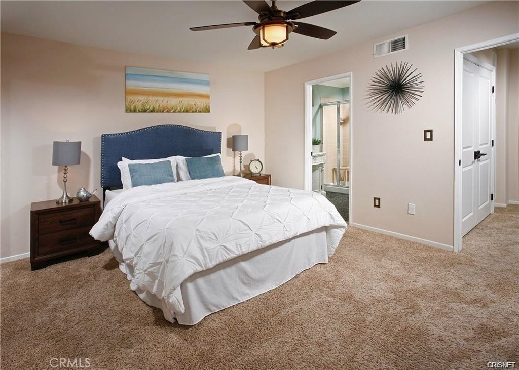 Elegant and modern 2BD/2.5BA condominium in the beautiful neighborhood of Studio City, boasting an impressive 1,274 sq. ft. of living space. As you enter a bright and airy living room features access to an open patio while maintaining the cozy vibe with recessed lighting and brick fireplace. The immaculate kitchen features crisp designs with custom white cabinetry, stainless steel appliances, granite counter tops, and wood flooring. Just past the downstairs bathroom, carpeted stairs lead you under an elegant chandelier to the bedrooms upstairs. A spacious fully carpeted master bedroom is your own private area for relaxation, large closets makes it an exquisite master suite, the master bathroom features a soak-in tub and tile flooring. Moving onto the second bedroom which is also a master suite with its own full bathroom which includes a walk-in shower and a tile floor. Additional features of this gorgeous condominium include beautiful views from every room, open 2-car parking and new heating and A/C unit that were recently installed. Within walking distance from Carpenter Community Charter School, banks, grocery stores, the post office, fine dining, entertainment and so much more! Don’t miss the opportunity to become the new proud owner of this one of a kind property!