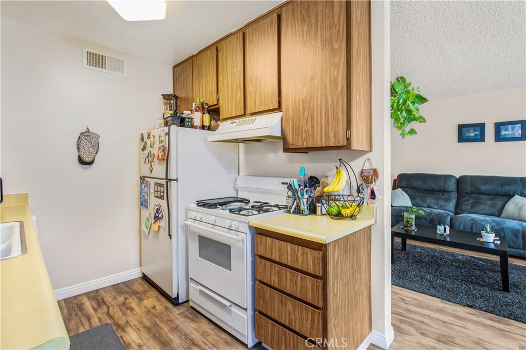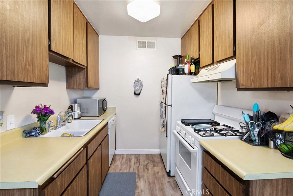 Updated Studio City Condo located in prime Studio City! Welcome to this charming top floor unit where you’re welcomed by wood laminate floors and crown moldings that flow throughout the living area to the kitchen sufficient for all of your culinary needs. The bathroom has been completely remodeled and features new vanity, light fixtures, tub with glass enclosure and intricate tile work. The bedroom has a large mirrored closet that provides storage utility and an expanding asthetic. Other amenities include central air with nest thermostat, covered garage parking and low HOA fees. Blocks from Ventura Blvd's shops, restaurants, golf course, park, library, CBS Studios, and more. Don’t miss this amazing opportunity to own in beloved Studio City!