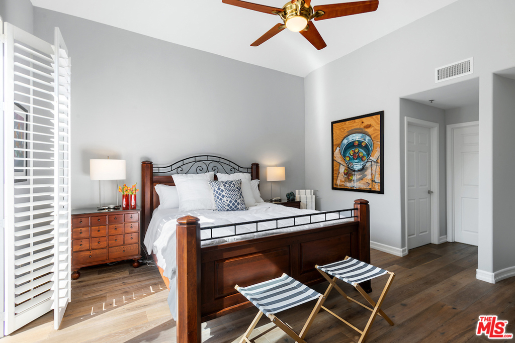 Modern Luxury arrives in a Condo-sized Gift Box! This Sophisticated & Bright 2 Bedroom, 2 Full Baths is both compact yet expansive. For those ready to own a home without being owned by a house! Carefree living in a secure building & garage, 2 assigned tandem & 14 guest spaces! 1 of 2 Penthouses facing the reflecting pool w/ waterfall & lush landscaping. This unit has no common walls. No expenses were spared to update & reimagine - So many upgrades! (See docs ). Living room has high ceilings, elegantly customized corner fireplace & glass screen. This open floor plan flows seamlessly into dining room & spiral stairs up to its private rooftop patio w/ views of Beeman park, surrounding mountains, & clear skies full of stars at night! Workmanship & style abound in the custom kitchen w/crown molding, quartz countertops & upgraded appliances. Balconies are off the living room & substantial en-suite main bedroom. This bedroom has a large customized walk-in closet & custom sunlit bathroom w/separate soaking tub & shower, adorned w/intricate custom inlays. Generous 2nd bedroom is across from update 2nd bath w/modern trend-setting glass tile. Sweeping skylighted hallway has a closet-stacked washer/dryer. Hardwood floors & plantation shutters throughout. Perfectly located in Studio City near Beeman Park, library, Ventura Blvd, shops, eateries, & much more.