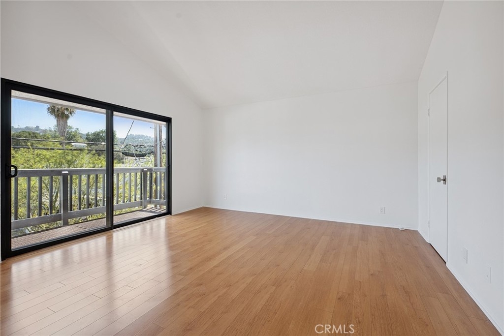 Amazing townhome located in the perfect spot - one block from Ventura Blvd in the heart of highly desirable Studio City. High ceilings with lots of light, hardwood floors, fireplace, stainless steel appliances, and laundry in unit. Corner unit in quiet back location of a small 8-unit building with only one common wall and double pained windows. Main bedroom is large and has a private balcony, walk-in closet, and vaulted ceilings. Spacious 2nd en-suite bedroom. The building features a beautiful swimming pool and a gated/secure garage with dedicated 2 parking spaces. This is beautiful oasis with all the best shopping, dining, entertainment and highly desirable schools right around the corner.