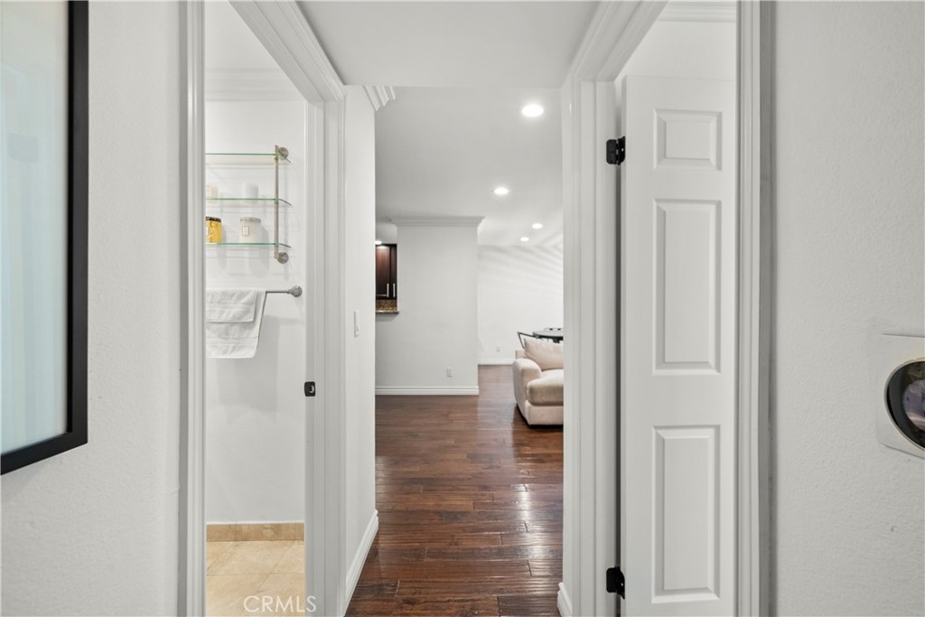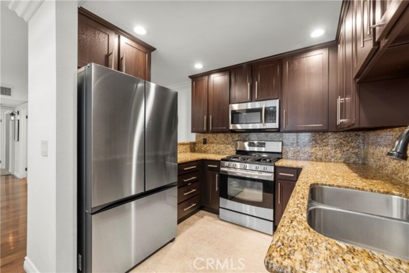 Lowest Priced 2 Bed Condo in Prime Studio City! Charming 2-bedroom, 2- Bath first floor- End Unit! Nestled within an exclusive 9-unit complex. Open Concept kitchen featuring polished granite countertops, espresso cabinets, a breakfast bar, and brand-new Samsung refrigerator. Engineered hardwood flooring, recessed lighting, traditional wood shutters and brand-new LG washer/dryer combo tucked away in closet. Master bedroom offers a walk-in closet, tons of natural light, travertine tiled bathroom and a private balcony. Two-car tandem parking with private storage. The building also offers community laundry with private lockers. Major transit lines including the nearby Universal Studios Red Line Metro stop and Hollywood Bowl shuttle. Block away from Sprouts, Ralph’s, Cava and multiple shopping centers full of dining and shopping options!