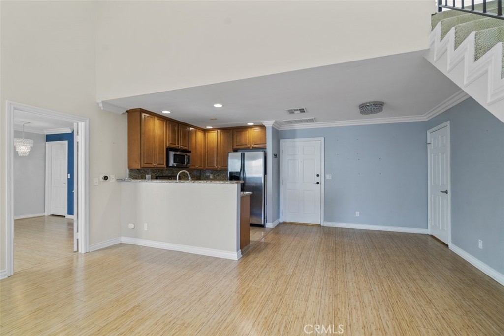 Welcome to the coveted Studio City! Poised within a secured building resides a bright and spacious 750-sqft condo with a beautiful loft space! Enter a vibrant floorplan featuring beautiful blonde tone flooring lined with baseboard molding, large windows with shutters, and elegant crown molding throughout. The adjoined space of the dining room and living room which enjoys soaring ceilings and a lovely fireplace to create a soothing ambiance for all entertaining. Fully illuminated by recessed lighting is the warm tone kitchen offering glossy granite countertops with a dual level counter, built-in caramel colored cabinetry, and built-in stainless-steel appliances to ignite every culinary creation. The single bedroom sparkles with pendent lighting fixtures, built-in closet space, and an en-suite bathroom complete with a shower/tub combination. Venture up the staircase and delight in the versatile loft space that overlooks the living room while providing sliding access to a private balcony. As part of an HOA, residents are provided with a community laundry and mail area plus one underground garage parking space plus one carport space. Conveniently located moments away from Studio Village, Ralphs, easy Hollywood Freeway access, local restaurants, shops, neighborhood parks, and much more along the bustling Venture Boulevard!