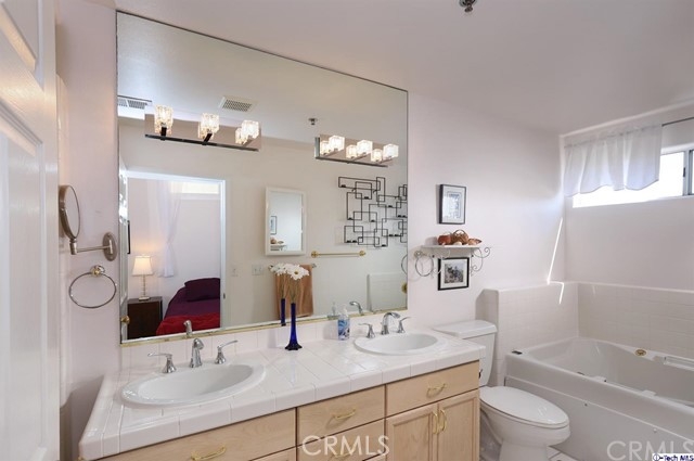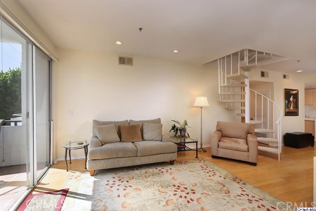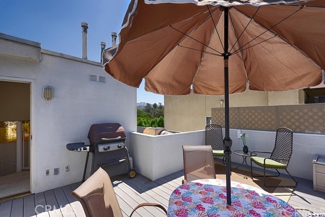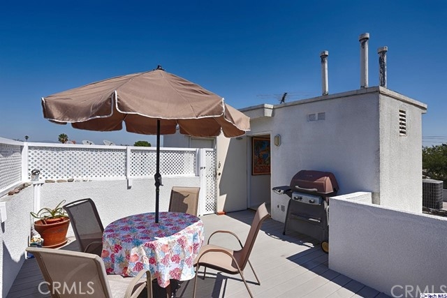 Welcome to 4212 Whitsett Ave., in Studio City. This bright end unit condo has a total of 1,269sqft with 2 bedrooms and 2 bathrooms. Kitchen is tiled and offers a generous amount of storage. Large living room, dining room, cozy fireplace and balcony. Spiral staircase leads to a large rooftop patio for additional outdoor living space. Newer Roof and water heater. Master suite with its own bathroom features double vanity, standing shower, tub and walk-in closet. Stackable washer/dryer in the unit. Plenty of closets and storage. Conveniently located close to Ventura Blvd, Studio City Library, Beeman Park, shops and restaurants. Two parking spaces in the gated subterranean garage and private storage.