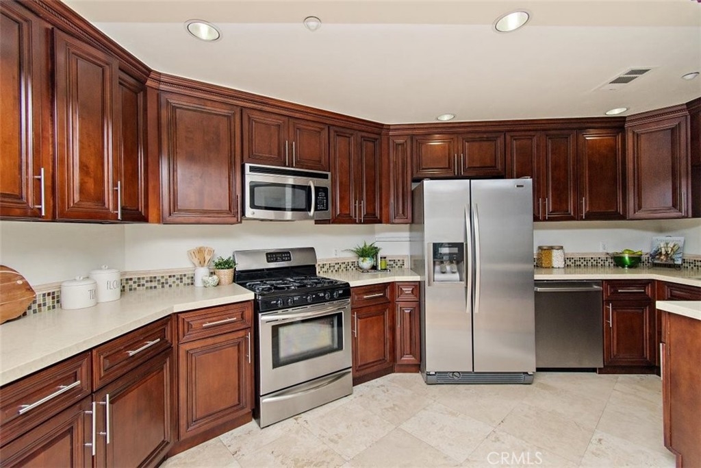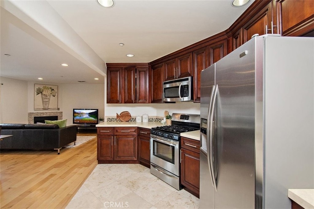 Welcome home to this light and bright 3 bedroom, 3 bathroom condo in the highly sought after neighborhood of Woodbridge Park situated on a tree lined street surrounded by million dollar homes. This home has been beautifully updated with Maple hardwood floors throughout. The open concept design offers a large kitchen featuring granite countertops and stainless steel appliances, a living room with a cozy fireplace and dining area all perfectly suited for entertaining. This space also offers a Juliet Balcony that provides natural sunlight and a warm place to plant beautiful and fragrant flowers in the spring. Two of the bedrooms are primary bedrooms with en-suite bathrooms and walk-in closets, one with its own skylight to bring in even more natural light. This quiet building with only 12 units provides gated underground parking with 2 side by side parking spots, a bonus room for extra storage. Mere minutes from Woodbridge Park, Tujunga Village, Universal Studios, freeways and all of the incredible shops and restaurants in Studio City!