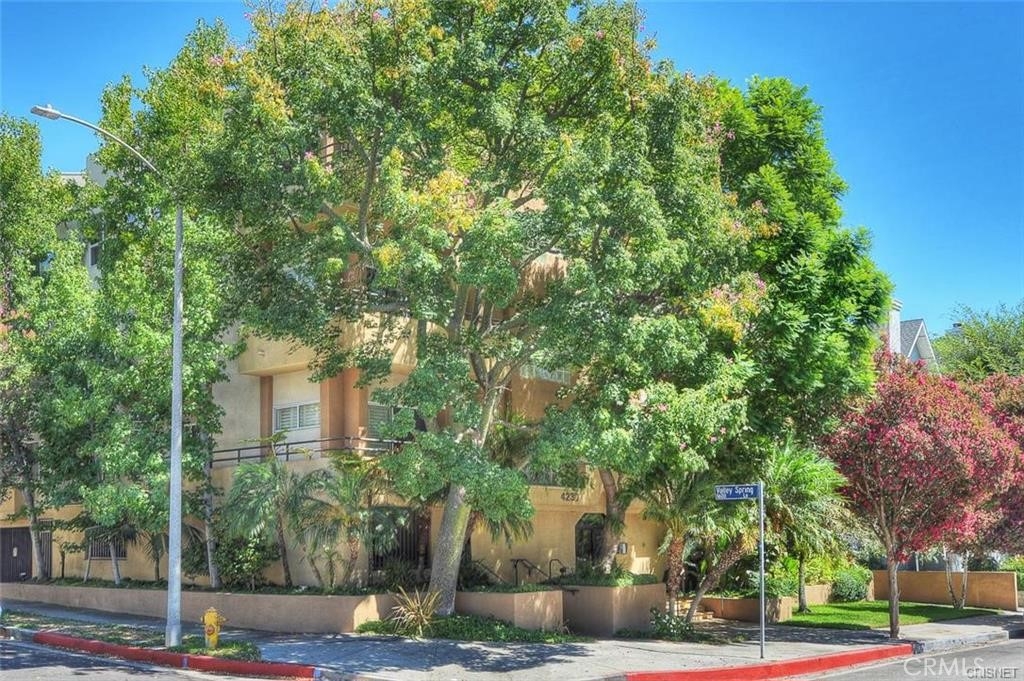 LOCATION LOCATION LOCATION! RARELY, do units in the complex hit the market and this ONE STORY, IMMACULATE, END UNIT, is being sold by its ORIGINAL OWNER. NEAR TOP SCHOOLS , just minutes to BURBANK, RADFORD, and UNIVERSAL STUDIOS, HOLLYWOOD, FWY'S, HIP AND TRENDY VENTURA BL, and FINE DINING! You will fall in love when you enter this SPLIT FLOOR PLAN 2 BEDROOM 2 BATH home adorned with windows, light, and surrounded by luscious foliage. ALL-NEW LAMINATED FLOORING, NEW REAL WOOD BASEBOARDS, REAL WOOD PLANTATION SHUTTERS, some HIGH TRAY CEILINGS, RECESSED LIGHTING, TONS OF NATURAL LIGHT, COZY GAS FIREPLACE, FRESH PAINT, A WRAP-AROUND PATIO with a balcony off the MAIN BEDROOM which has an ON-SUITE BATHROOM w/JETTED TUB and a WALK-IN CLOSET. The other side of the unit has a 2nd BR and a FULL BATH w/A WALK-IN SHOWER. Don't miss the IN-UNIT STACKING WASHER AND DRYER INCLUDED WITH SALE. The complex is very clean, quiet, and is equipped with SECURE ENTRY, an ELEVATOR, SAUNA, and a GYM/BILLARDS/REC ROOM. You have TWO GATED, TANDEM SUBTERRANEAN PARKING SPACES. The FRIDGE IS INCLUDED!
