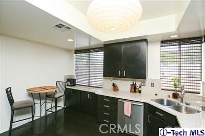 This super clean updated two bedroom, three bath single story condo has approximately 1,575 light and bright square feet! Master bedroom has a private patio and walk-in closet. The attached bathroom has slate floors, jacuzzi tub and separate shower. The unit includes central air and heat, recessed lighting, wood floors,carpet and fireplace. Large screened balcony, living room, dining area, laundry and a contemporary full stainless kitchen. Right off the dining room is a large outdoor screened patio.Secure underground parking with two side by side parking spots. Great shools. Presigious Dixie Canyon Elementary School. Walk to restaurants like Le Pain or Pinot Bistro. Available furnished or unfurnished.HOA $340 includes earthquake insurance. Very motivated seller.
