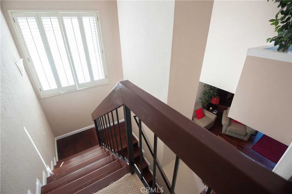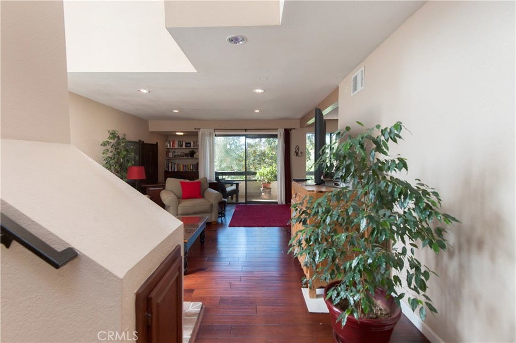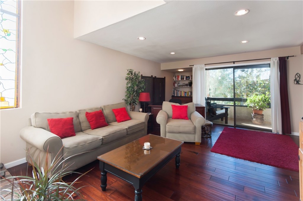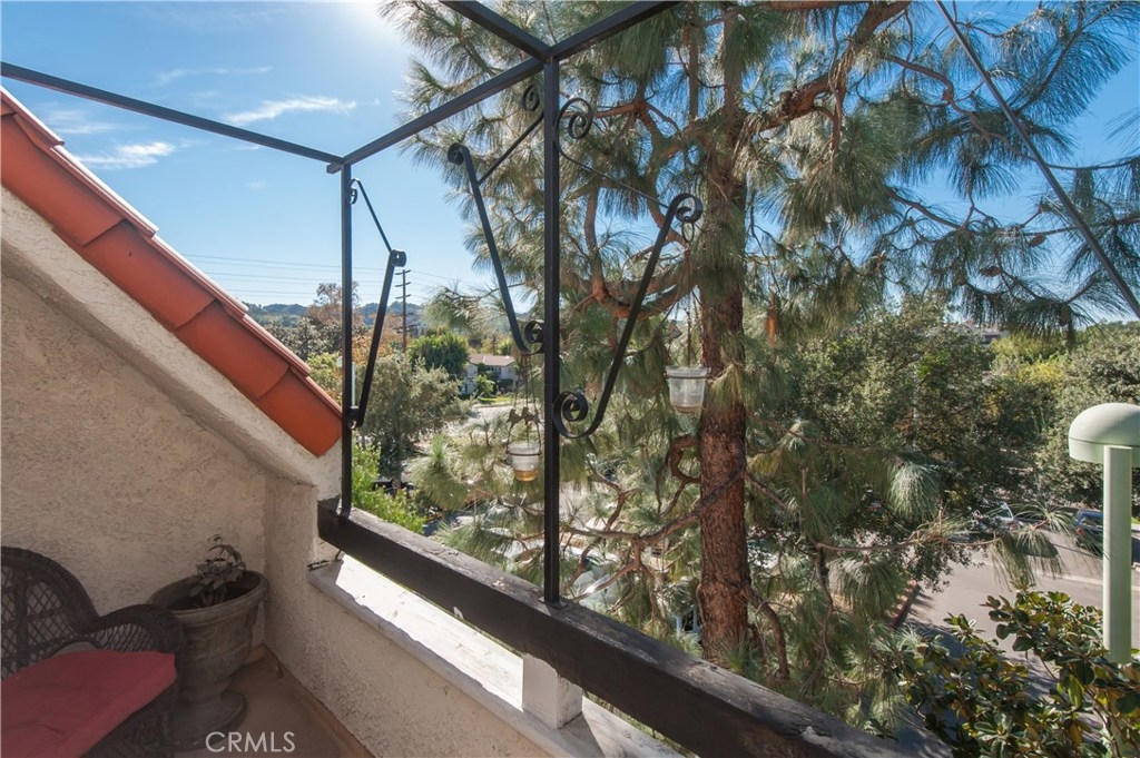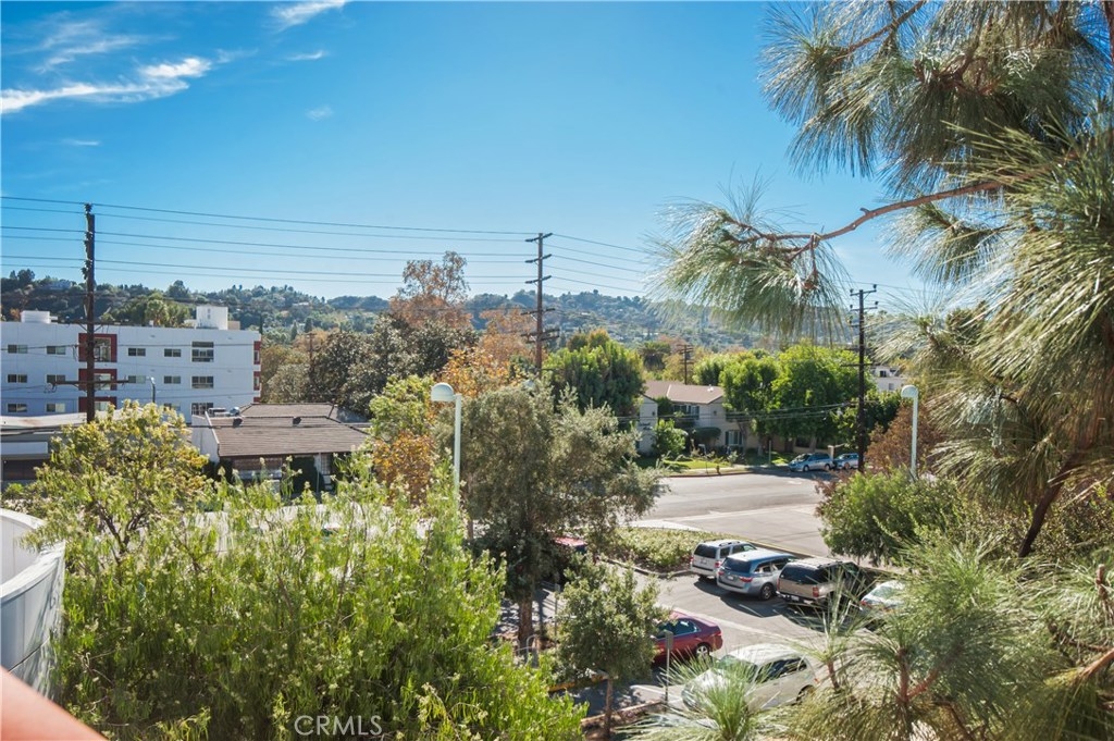 Beautiful and extremely private 2 bed, 1.5 bath, corner end unit townhouse in a great building and prime Studio City location. Light and bright with lots of windows, high ceilings, and amazing views from both 1st and 2nd floor balconies. This townhouse faces the back of the building and features hardwood floors, a fireplace, stained glass window, private laundry in unit, and a unique double entry (one on the 1st floor and the other on the 2nd floor). Elevator in building and secure 2 car parking. Walk everywhere. 3 year new HVAC. LOW Hoa. Ready to move right in.