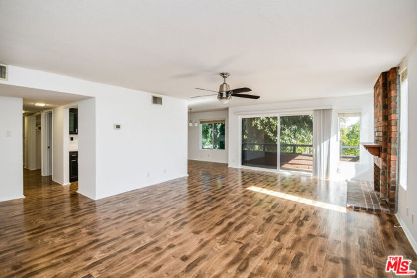 This spacious single-level condominium unit is in one of the most desirable neighborhoods in Studio City. This extremely private & quiet, 2 bed, 2 bath end-unit greets guests with an abundance of natural light, hardwood floors, & open space. Complete with a floor-to-ceiling fireplace, the large living room is perfect for entertaining. Double-pane sliding doors lead out to a spacious balcony, offering a wonderful space for al fresco dining and summer grilling. Primary bedroom features a sizeable walk-in closet, private balcony, and bathroom. In-unit laundry hookups, newer Central HVAC system, double pane windows, 2 tandem parking spots & an elevator with easy access. Blocks from Ventura Blvd boutiques, cafes, yoga studios & easy 101 freeway access. At almost 1,300 square feet, this freshly painted unit is a must see!