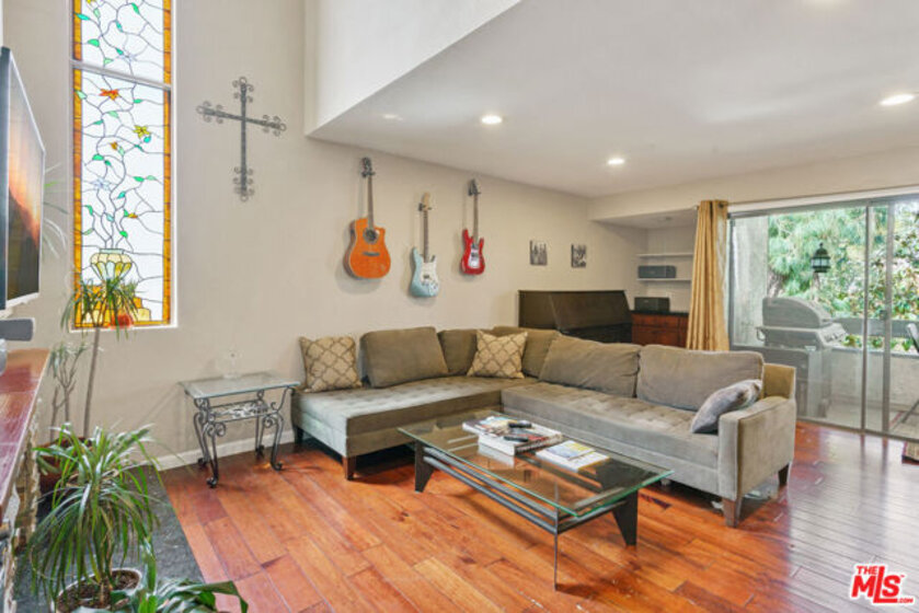 Highly desirable Studio City location! One of a kind, two level rear corner unit with unique double entry. Light filled Livingroom features Cathedral ceiling, gas and wood fireplace. Private patio off dining area with BBQ and kitchen which features granite counter, stainless steel appliances and breakfast bar. Hardwood floors on lower main level with bath and laundry. Upstairs show cases Master bedroom with walk-in closet, ceiling fan and direct access to private serene and romantic balcony shared with Large second bedroom. Remodeled full bath with double vanity sinks, relaxing soaking tub with shower and all new fixtures. This unit has two individual parking spaces (not tandem). Elevator access from parking garage is perfect for bringing up groceries etc. Private storage is included. Building is gated and secured.