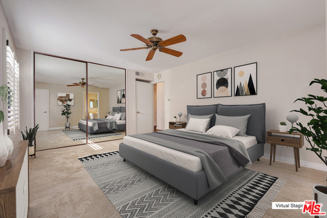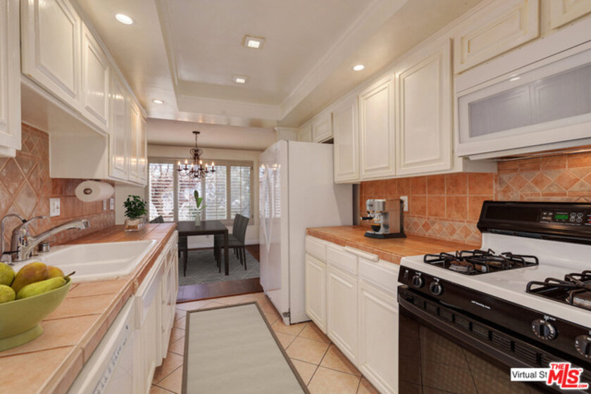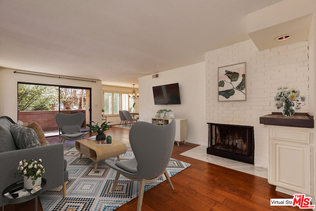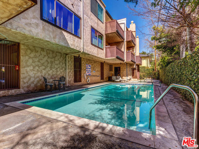 Corner unit Studio City condo beaming with morning sun in prime area, moments to all the shops, restaurants and nightlife of Ventura Blvd. Floorpan flows from a large open living room with fireplace and balcony that overlooks the pool to dining room and galley kitchen. Separate hallway has laundry closet with side by side machines, lots of storage and 2 bedroom bathroom suites both oversized with walk in closets. Located at the back of the building, this unit is quiet, serene and boasts 1380 sq ft of living space. Owner has kept the unit immaculate and put in new wood floors, carpets and painted. Side by side parking and a very good floorplan! Move in ready or could be renovated for more value add.