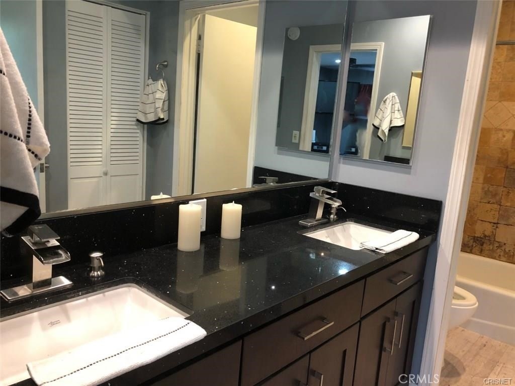 This 1 bed/1 bath has been COMPLETELY REMODELED! Top floor East facing corner unit with only one shared wall. New double pane windows in the whole house including the sliding glass door. White plantation shutters in the living room and a beautiful fireplace made from antique brick! A beautifully done dry bar and recessed lighting throughout. New quartz counters in the bathroom and kitchen. The bathroom has double sinks and new modern faucets. Tons of closet space and a large balcony that has a gas hookup for a BBQ. New wall safe built in. All pets welcome and a low HOA! Covered gated parking and each floor has a free to use high end washer and dryer. 1 1/2 blocks from Aroma Cafe in the desirable Tujunga Village!