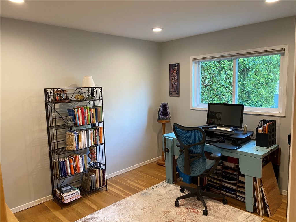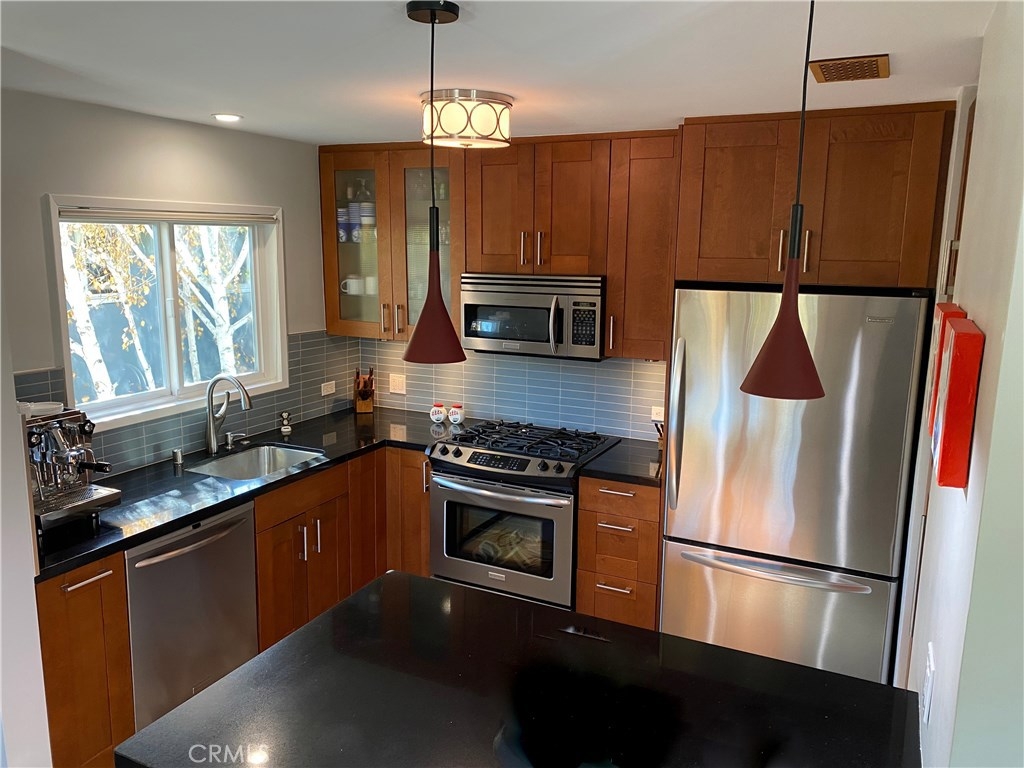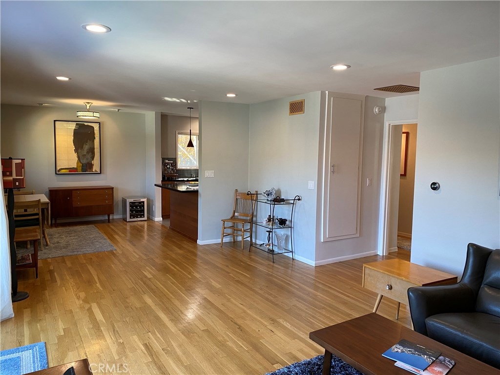 Welcome home to a cool, hip 1950s mid-century, renovated condo. Top floor, single level, living space with your own private entrance. Quiet end unit with windows on three sides and lots of natural light, plus no one lives above or below. Refined finishes though out with a sophisticated timeless style. This exceptional residence features an appealing, sunlit open-concept floor plan ideally suited for today’s modern lifestyle. An intimate, lushly landscaped garden setting and pool, located in the heart of Woodbridge Park. Located moments to major studios and famed Tujunga Village. A location Los Angeles Magazine named as One of the Ten Best Neighborhoods in LA. A modern makeover with no detail overlooked, no expense spared, all done with meticulous attention to detail with high-quality finishes. Resurfaced, wood floors grace living areas. Recessed LED lighting on dimmers glow throughout. The remodeled bath is dressed in high-end fixtures and custom finishes. The inspired kitchen is an ideally planned open culinary center for the cuisine artist. A continuum of glass walls brings the outdoors and gives way to an expansive view patio. Amenities include dual paned windows, HVAC system, Nest thermostat, abundant storage, retractable blinds and more!