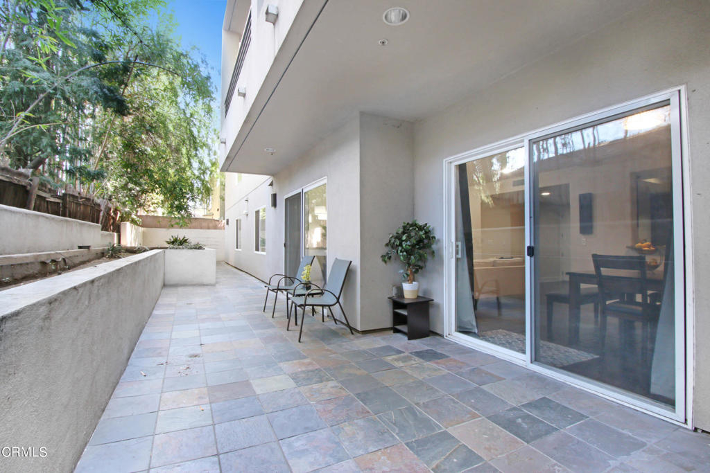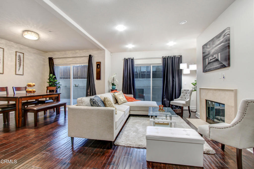 Welcome to Acama Villas! An exciting opportunity to own a single story level, luxury condo. This spacious condo is tucked away in the back of the building providing a private and quiet home. As you enter, you are greeted by rich and beautiful engineered hardwood floors with an open floor plan. The large kitchen is equipped with stainless steel appliances including a new fridge, granite countertops and plenty of cabinetry. Gas fireplace in the living room is adjacent to two sliding doors that lead to your patio. High ceilings, newer paint, newer carpet, LED recessed lighting with dimmers. Master bathroom features dual vanity sinks with a separate bathtub and shower. Dedicated tandem parking spaces with a personal charging outlet for your EV. Plenty of guest parking spaces. HOA is professionally managed with secure entry and intercom. Security cameras throughout the building. Monthly dues include hot water, gas, trash, gardener, and Earthquake insurance. Great location for a fun and active lifestyle. Minutes away from Universal Studios and Freeways. This hot home will not last. See it today!