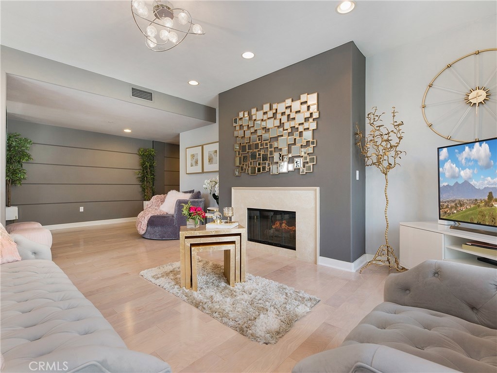 Luxury Penthouse with mountain views. Opulent finishes abound in this double master bedroom condo. Recently updated high end unique wood floors, gold plated chandelier granite counters in the kitchen and stainless steel appliances are just a few of the luxurious touches you will find. Relax in the living room with beautiful fireplace. Wonderful balcony has room for a BBQ . This home is located in the highly sought after Woodbridge park neighborhood considered one of ' Los Angeles's ten best neighborhoods. the washer, dryer & refrigerator included in the sale....