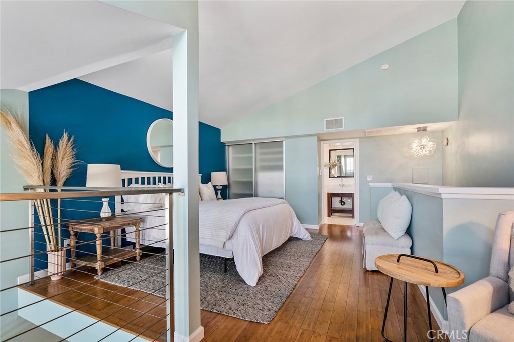 Welcome home to this fabulous 1 bedroom 1.5 bath two story loft-style condo in a prime Studio City location! One of only 34 units, this charming property is ready for its new owner. The first floor features a cute powder room, an open kitchen with stainless steel appliances and granite counters, bamboo wood flooring throughout, and fantastic high ceilings in the living room with a fireplace. There is a balcony off of the living room too. Upstairs features an amazing master bedroom suite with another fireplace, a private full bath, a walk-in closet plus another custom closet, and plenty of room for an office and lounging area. This corner unit allows for double exposure and ample light throughout, tons of storage, and a luxurious washer/dryer round out this unique home. Topping it all off are the amazing amenities in this Mediterranean-style complex: a gorgeous courtyard with pool, spa & BBQ, a gym, sauna, and showers, and the recently renovated lobby, elevator, and community room. There is also a secure garage with 2 tandem subterranean parking spots and 8 guest parking spots. This pet-friendly, quaint community is conveniently located 1 block from Ventura Blvd and tons of shopping and restaurants. Easy access to the 101, 170, and 134 freeways and the metro red line station. Come make this Studio City treasure your new home!