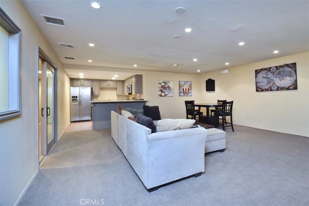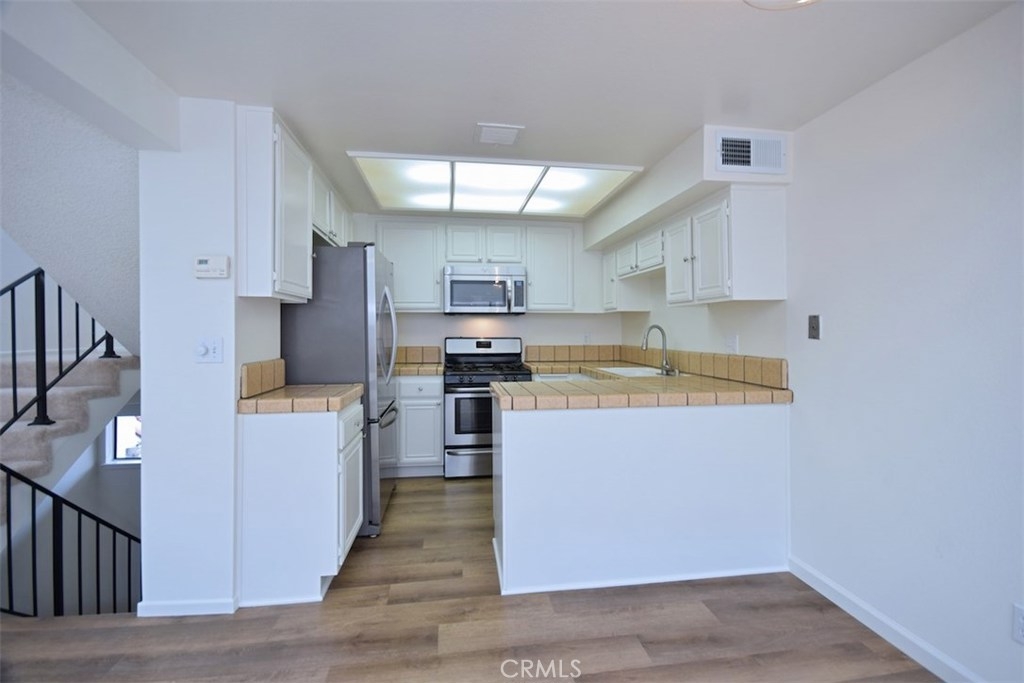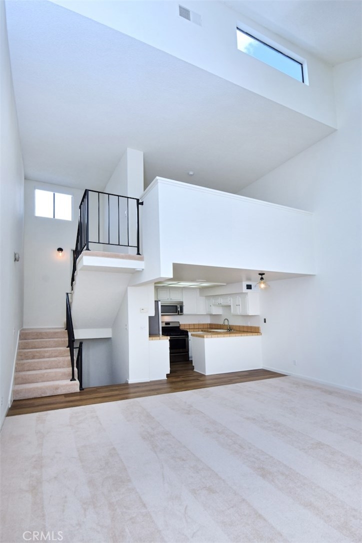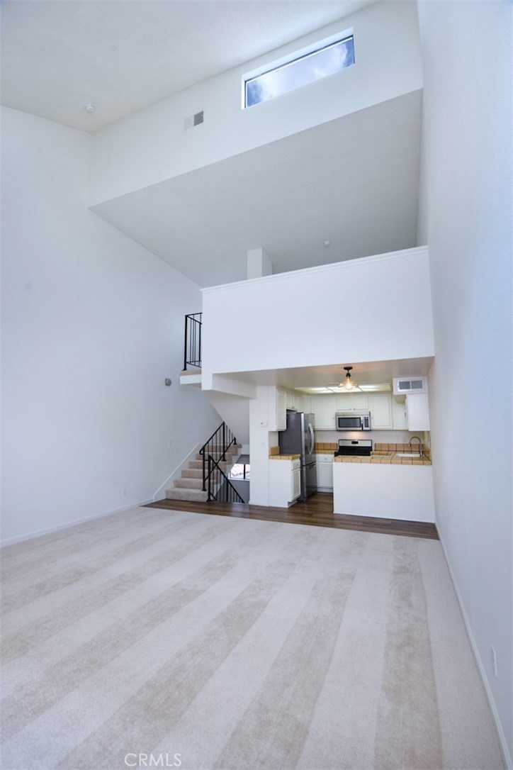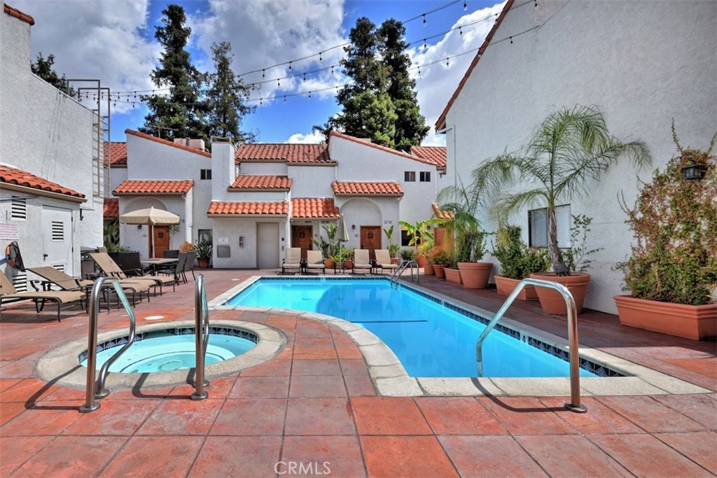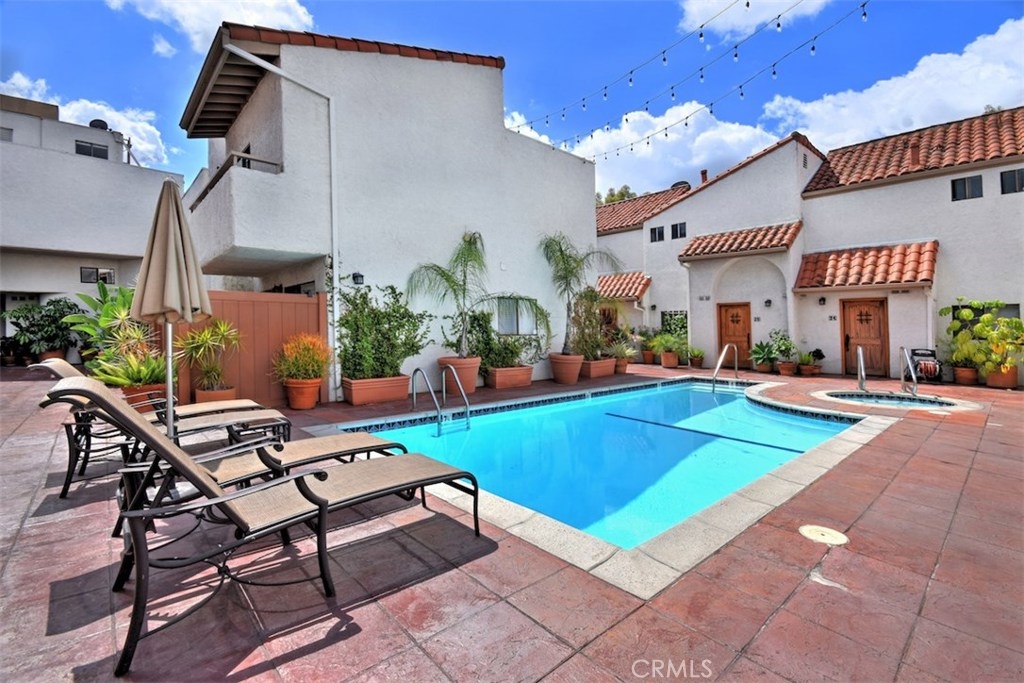 Introducing an exceptional loft style townhome in a gorgeous Spanish style complex, right in the heart of vibrant Studio City! First floor features an inviting entryway and a full bedroom suite, complete with a large walk in closet and a remodeled bathroom with modern accents. The main level above boasts a spacious living room with exceptionally high vaulted ceilings, brick fireplace and loads of natural light. Adjacent to the living room is the kitchen with stainless steel appliances, brand new dishwasher and dual porcelain sink. The third level features a second full bathroom, large walk in closet and a loft style bedroom overlooking the living room. The unit features brand new plank flooring in the kitchen on the lower stairs, and brand new carpet in the living room and both bedrooms. In unit stackable laundry machine hookups located in the closet adjacent to the lower level bedroom. Central AC and heat. Enjoy the privacy of no neighbor above or below. Rare side by side parking spaces, and plenty of guest parking as well as a private storage area and bike parking area in the garage. Earthquake insurance included. The complex also features an in ground resort style pool and jacuzzi, gym, club house with kitchen, his and hers saunas and lots of greenery for a serene, natural feel. Located a short drive to the studios, Hollywood and many freeways, and within walking distance to Ralph's, Starbucks, and many more Studio City shops and restaurants.