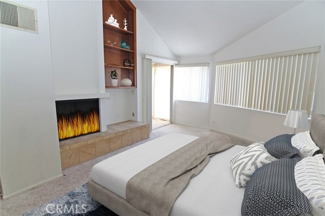 Tri-level townhome close to studios and shopping. Bright floor plan with high ceilings in master and living room. Has new paint and flooring. Patio off living room. One bedroom downstairs with 3/4 bath and master suite up with high ceilings, walk-in closet, fireplace, partially-enclosed patio, jetted tub. Entry area leads to living room looking to patio. Mezzanine kitchen and large dining room area open to living room for great entertaining flow. Laundry in unit, two-car gated and guest parking below.