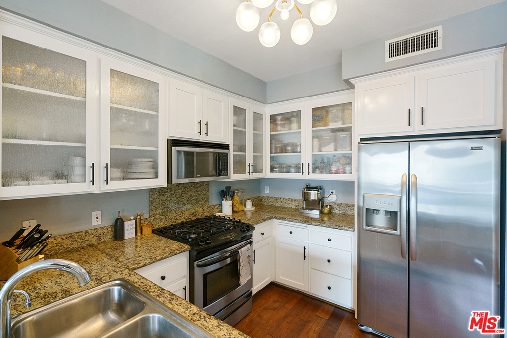 Beautiful, newly updated 2 bedroom, 2 bathroom condo in prime, walkable Studio City location. Enter into the welcoming, open floor-plan with gorgeous kitchen featuring stainless steel appliances, tons of cabinet space, and granite counters, perfect for cooking and entertaining. Kitchen opens to spacious living room and dining room area. Outdoor balcony off the living area ideal for grilling or your morning coffee. Bedrooms on opposite side of the living area offering complete privacy. Huge master bathroom off the master bedroom boasts dual vanity sinks, large soaking tub, and luxurious steam shower for true, spa-like experience. Guest bathroom features full shower and also serves as a powder room. Also features hardwood floors throughout, central heat and air, living room fireplace, dual pane windows, in-unit laundry and 2 tandem parking spots. HOA includes Earthquake Insurance. Amazing neighborhood, just blocks from tons of different shops and restaurants in charming Tujunga Village.