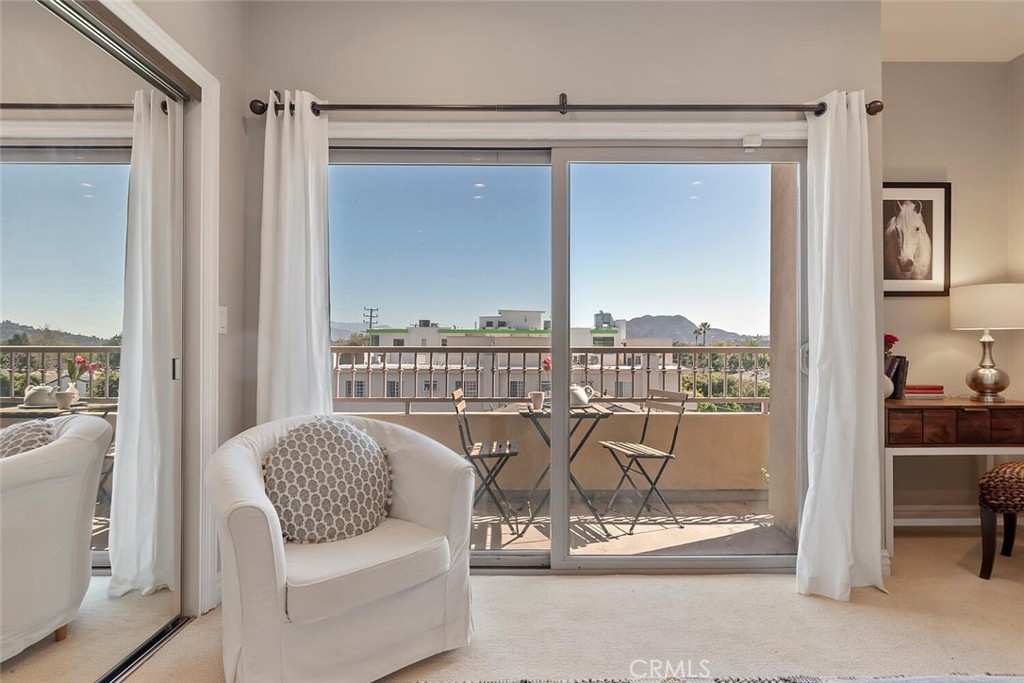 Hip and stylish top floor, single-level 2bd/2ba unit in prime location near Tujunga Village in Studio City. This super clean home features high ceilings, hardwood floors, moulding, beautiful finishes, in-unit laundry with a Miehle stackable washer/dryer, and large, spacious rooms with spectacular views and a balcony off of the primary suite. The kitchen features granite counters, stainless steel appliances, lots of counter space, cupboards and built-ins. Two tandem parking spots in street-level parking lot and plenty of street parking. Well-kept, security building.