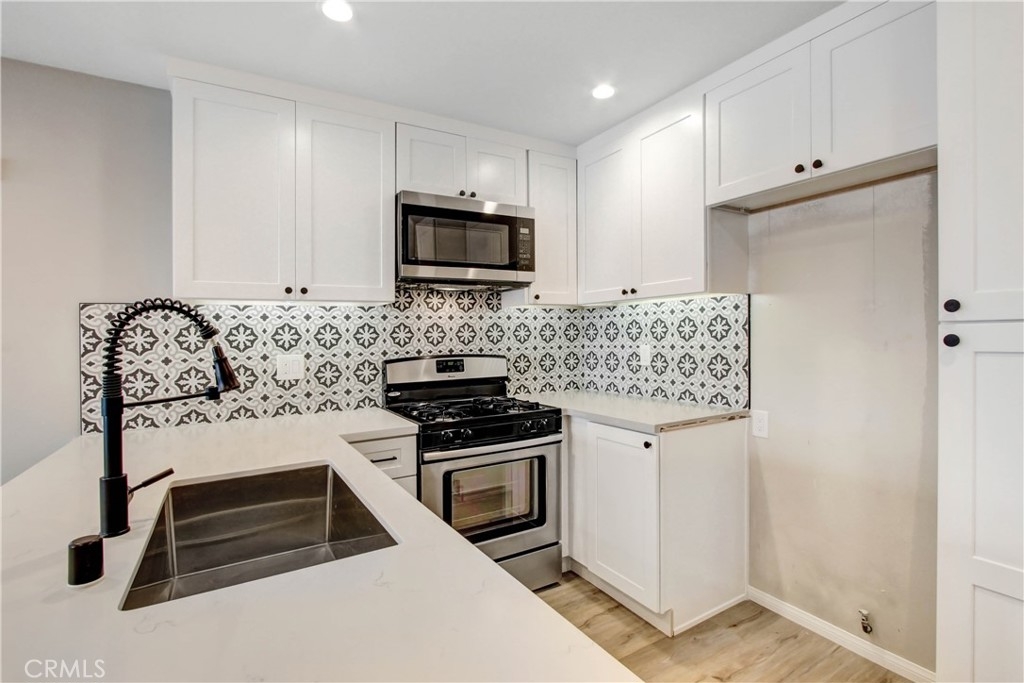 Back on market!! Buyers loss is your buyers gain!! Remodeled stunner just north of Ventura Blvd. This beautifully remodel unit has completely new kitchen with new cabinets, appliances, new paint throughout, recessed lights, amazing quartz countertops, and beautiful backsplash. The formal dine and the entire home has new wood like laminate flooring, recessed lights, and the fireplace has tile to match your new kitchens backsplash. Head up stairs to the bedrooms and you will be amazed at the beautiful new bathrooms with showers that will make you smile every day, new matching quartz countertops throughout the entire home, new carpet, new fans throughout, and just an amazing unit. FYI the brand new carpeting is now installed. Also the roof on the project was just redone within the last 6 months.