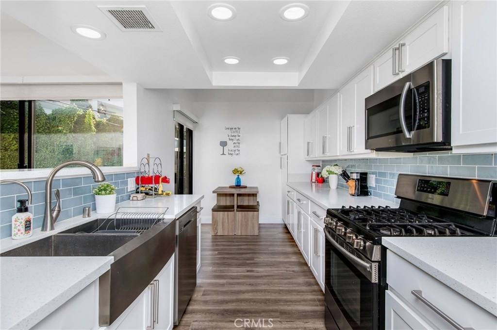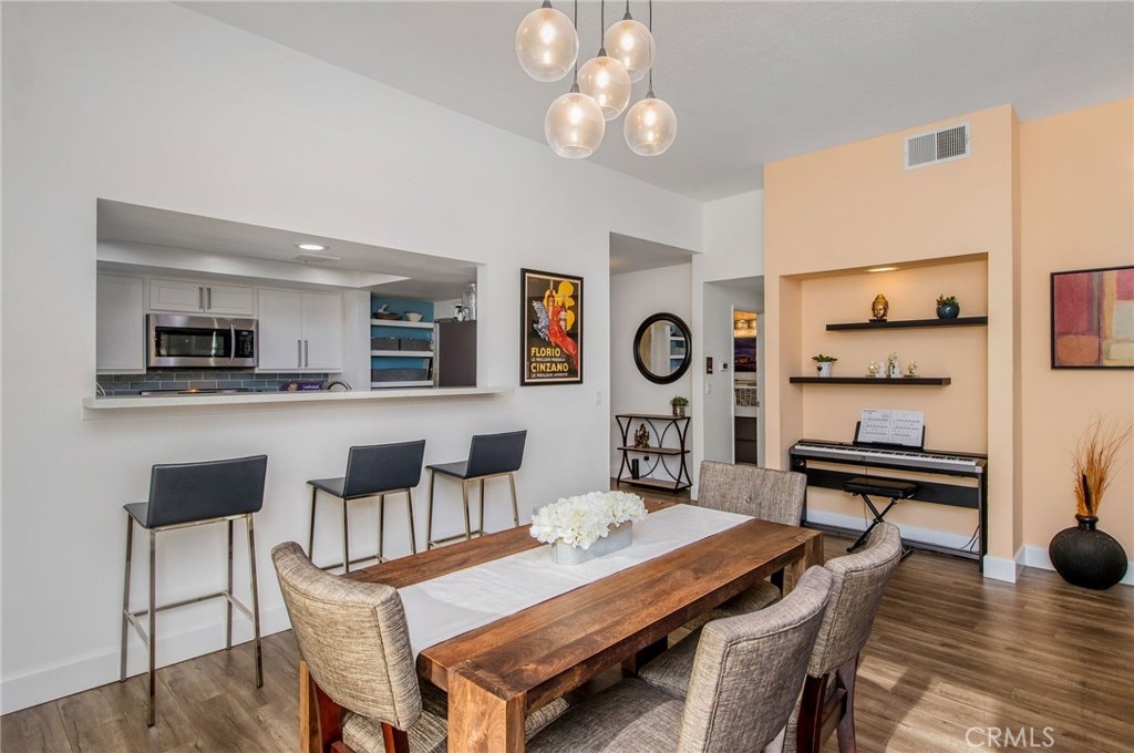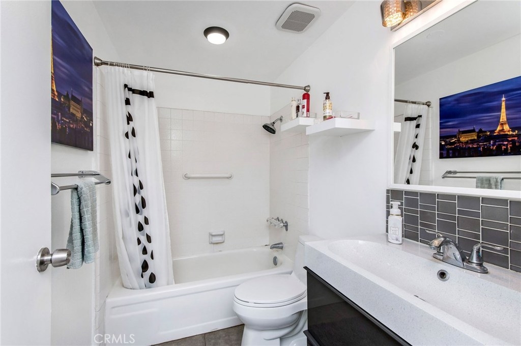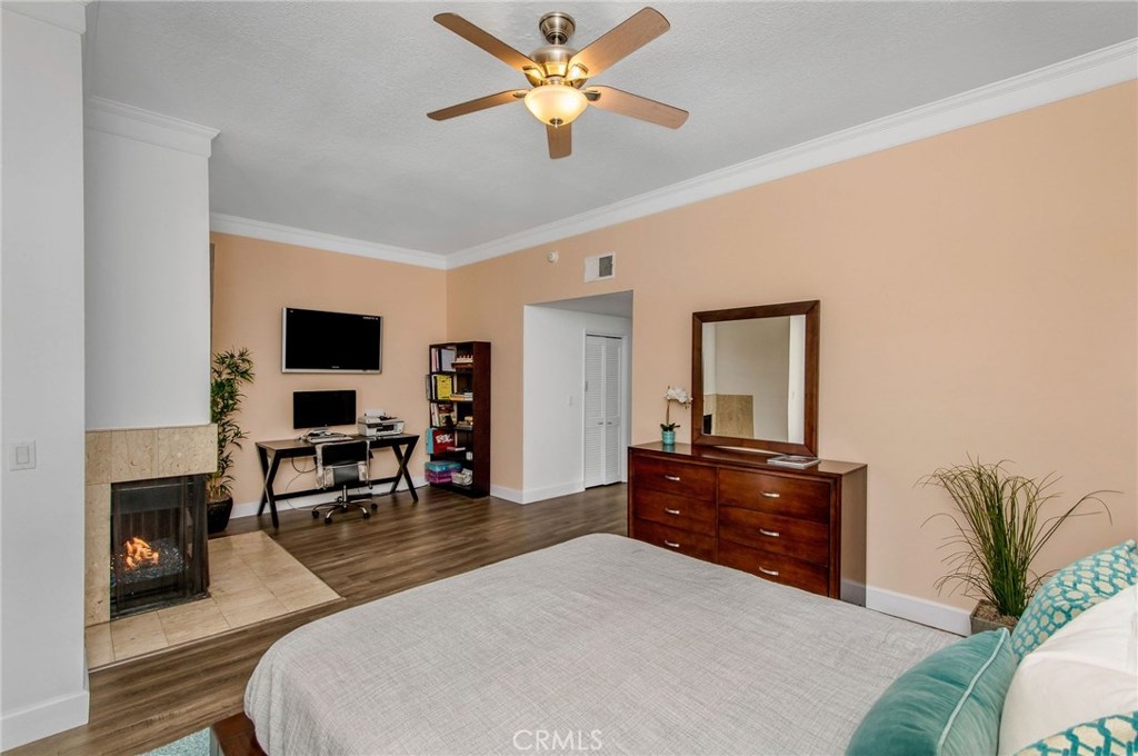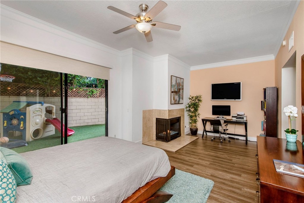 Located in Carpenter School District in one of the best pockets of Studio City is this 2 bed, 2 bath condo with rare private outdoor area. This light and bring home offers 1,359 square feet of living space, accentuated by high ceilings and an abundance of natural light. The spacious living/dining room offers a crushed glass fireplace and two sets of sliding doors, one to your large private “backyard,” and another to a patio which opens directly to the updated pool area. The remodeled kitchen has quartz counters and backsplash, plenty of storage, newer appliances, breakfast nook, and breakfast bar that opens to the dining area and living room. The master suite is large enough for a sitting area or office nook and has a fireplace as well as its own access to the backyard. The master bath has dual vanities, a walk in shower, and separate soaker tub. The most coveted feature of this home is the backyard space with large grassy turf and multiple seating areas, something you won’t find in any other local condo. Additional features include recently renovated common spaces, heated pool, subterranean gated parking, newer HVAC unit, custom door and window shades, and more. Moments from the famed Studio City Farmer’s Market, CBS lot, and the shops and restaurants of Ventura Blvd. This rare find won’t last long!