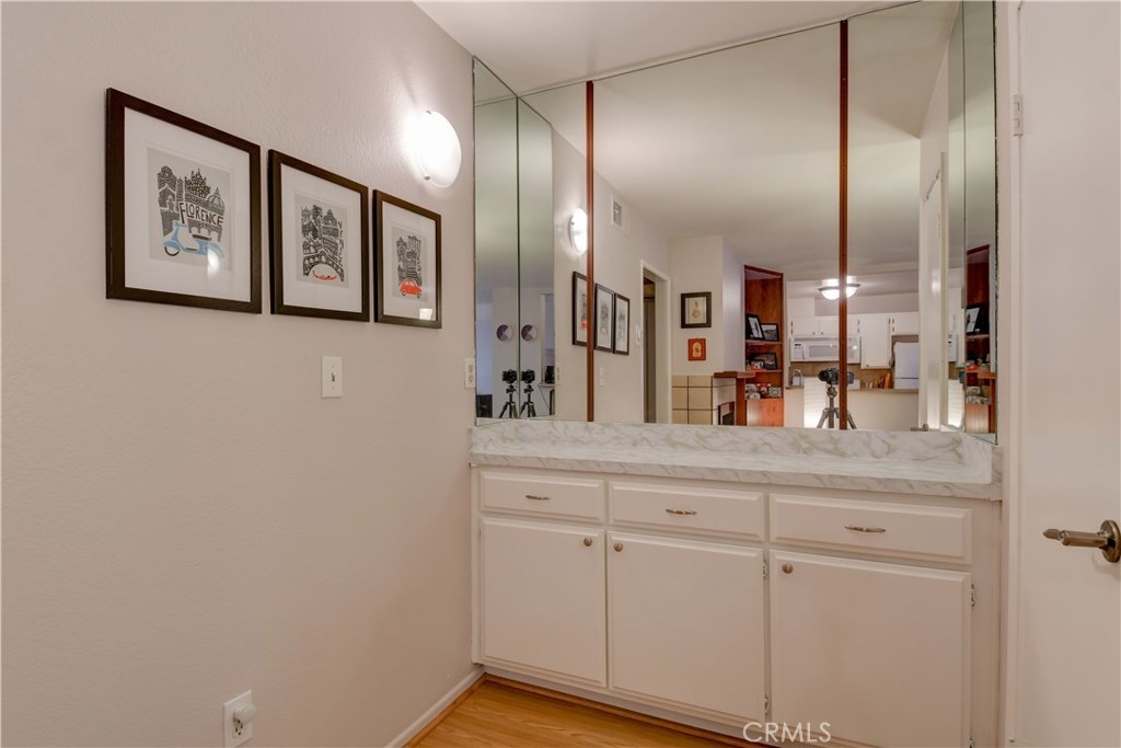 Located in the heart of Studio City near studios, the Farmer's Market, the LA River's landscaped jogging/walking trails,shopping, and some of the best restaurants in the Los Angeles area. This single story lower level unit features laminate flooring throughout the entire unit, granite counters & stone backsplash and a newer HVAC. The living room features a cozy fireplace. Quaint small complex with only 12 units, low HOA & secure access.