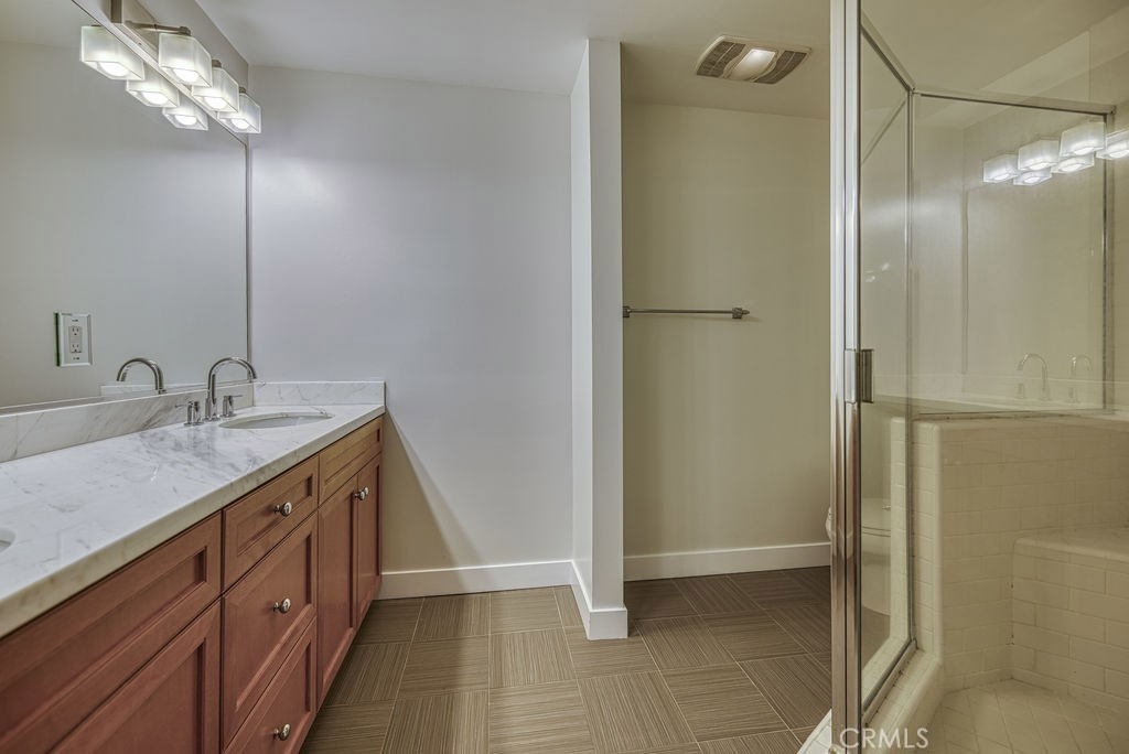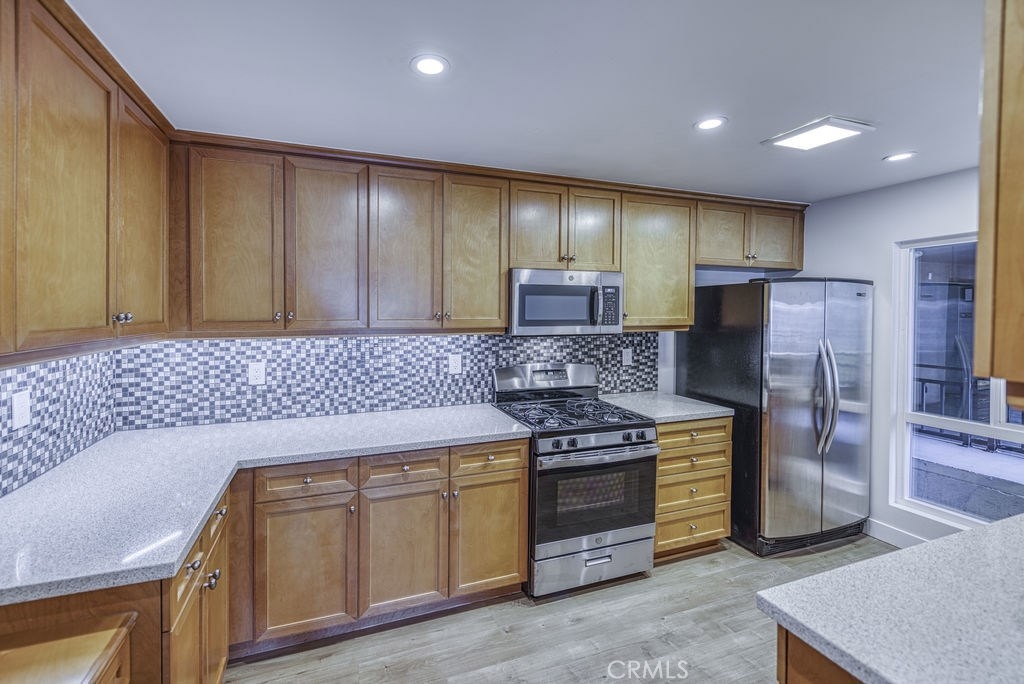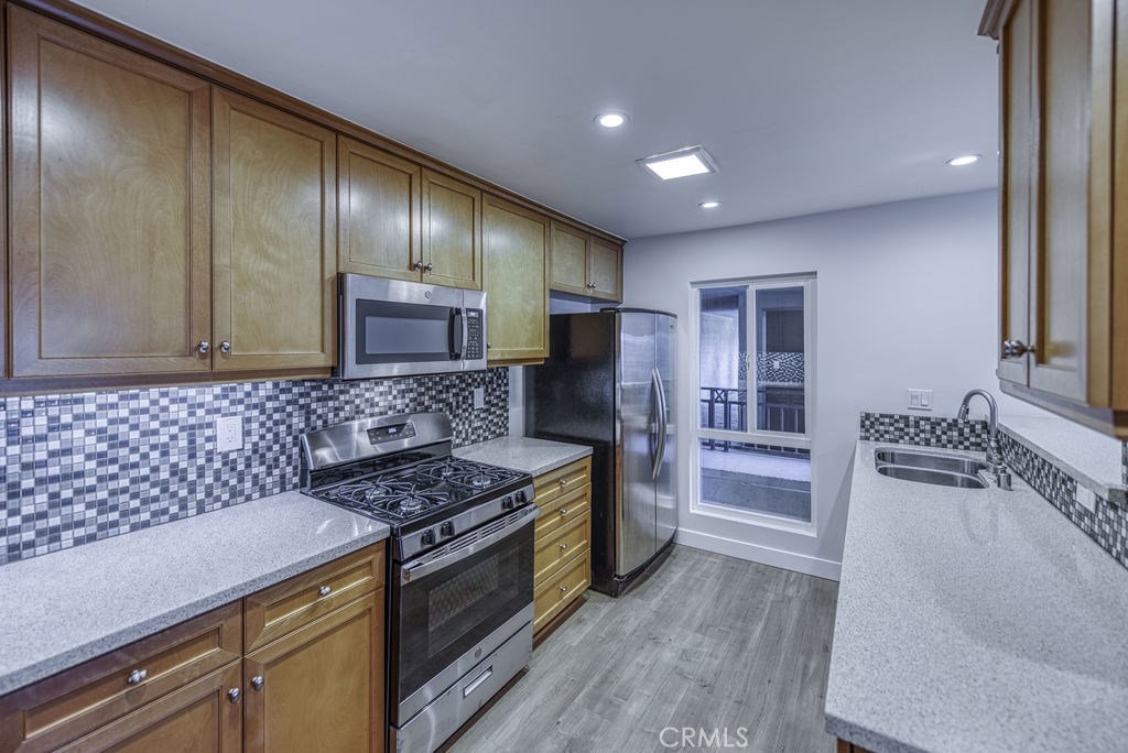 Back on the market! This spacious turnkey, corner unit features two bedrooms and two bathrooms on one level. As you walk in this immaculate condo, your eyes are drawn to the large living room with a fireplace. You immediately notice the brightness from the windows offering natural sunlight as you relax on your balcony. The kitchen has been beautifully remodeled with quartz countertops, custom cabinets with peek-a-boo doors, stainless steel appliances, microwave, refrigerator, dishwasher, and a new stove/oven. The oversized Master bedroom features a large window with a beautiful park-like tree outside to provide shade. Not only does this Master have a big walk in closet, there are built-ins to provide additional closet space. The Master bathroom boasts a oversized shower and double vanity with upgraded fixtures. To complete this perfect home, it has a Nest thermostat and laundry hookup inside the unit. It is located near the elevator which is secured with a code to access. Building has underground parking and a community pool.