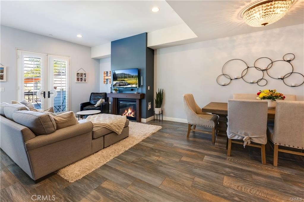 Treat yourself to the urban lifestyle you've always wanted in this 3-bedroom, 3-bath Studio City townhome-style condo residence on a beautiful, tree-lined street! Enter into this stunning modern end unit with a sun-soaked interior, where shuttered windows, lofty ceilings, and gorgeous wide-plank flooring create a lively atmosphere. A stately fireplace draws you to the living area, while an elegant flush-mount lighting fixture sets the mood in the adjacent dining corner. Try out signature dishes in the modern kitchen sporting sleek stainless-steel appliances, handsome cabinetry, a chic backsplash, and gleaming countertops. Plush carpeting enhances the comfort of the well-sized bedrooms, the grandest of which is the primary suite, which showcases vaulted ceilings, a Juliet balcony, and a luxurious ensuite with a frameless shower and soaking tub. Second floor French doors open to an exclusive balcony where you can unwind in seclusion. Additionally, there's a versatile main-level bonus room, an office, and an attached 2-car garage. The Studio City Farmers Market, Tujunga Village, the Sportsmen's Lodge Shopping Center, Colfax Elementary School, and restaurants are all easily accessible.