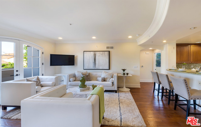 Gorgeous 3 bedroom penthouse located in the heart of Studio City. The kitchen features granite counters, Jenn-Air appliances and skylight, and opens to the great room, with fireplace and large balcony for entertaining. The unit is bright and has a great open layout with views of the mountains. The spacious master suite has a walk-in closet, and a generous bathroom with double vanity, large shower, and soaking tub. The second and third bedroom are located on the opposite side of the unit for increased privacy. Unit features laundry area with in-unit washer and dryer. Additional features include recessed lighting, hardwood floors, and flat screen in the living room. The controlled access building has a fitness center & club room on the first floor and is located by CBS Studios and moments from the Farmers Market, restaurants and shopping. Easy access to Laurel Canyon, Ventura Boulevard, and the 101.