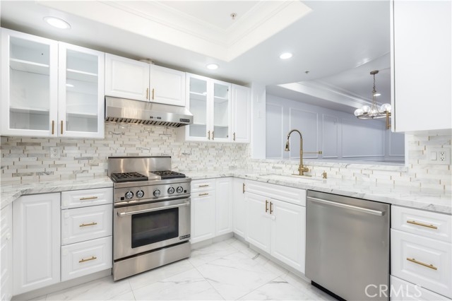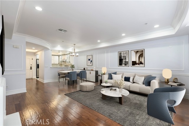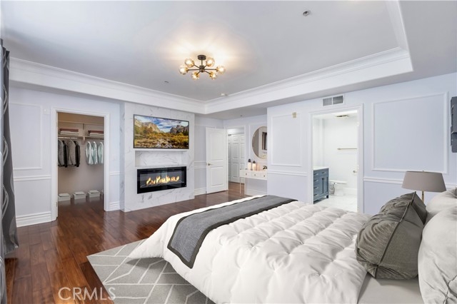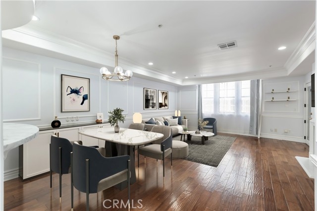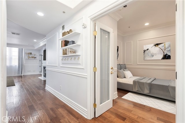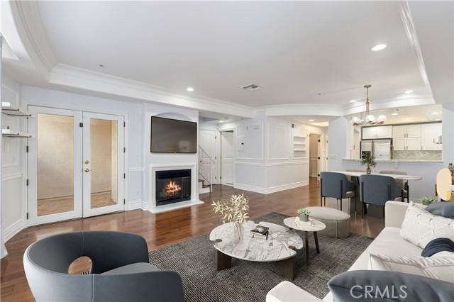 Discover this stunning two-story, top-floor condo in a fully secured building, offering 1,600 square feet of refined living space with three bedrooms and three full baths. Thoughtfully designed for comfort and functionality, it features one bedroom and full bath on the main level, plus two en-suite bedrooms upstairs, including a primary suite with dual sinks, soaking tub, and separate shower. Located within the highly coveted Carpenter School District, this condo showcases high ceilings with detailed moldings, distressed hardwood floors, recessed lighting, and a cozy fireplace. The gourmet kitchen is equipped with stainless steel appliances, ample cabinetry, and bar counter seating, ideal for both casual dining and entertaining. Additional highlights include a skylight, in-unit laundry on the upper level, two tandem parking spaces in a gated garage, and access to a community gym and recreation/study room. Set in a vibrant, walkable Studio City neighborhood, moments from Tujunga Village, the Farmers Market, CBS Studio Center, and Sushi Row, this condo offers an exceptional blend of elegance, practicality, and location.