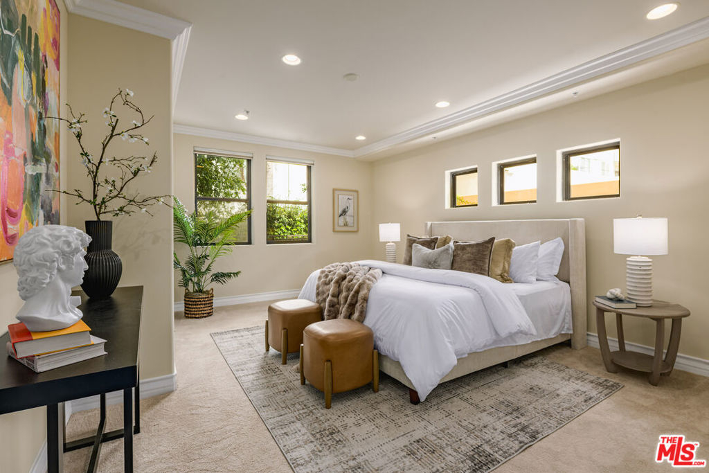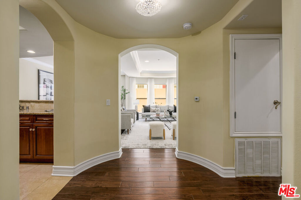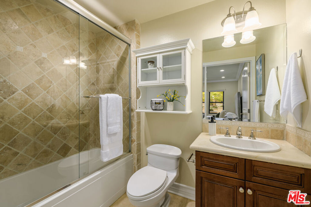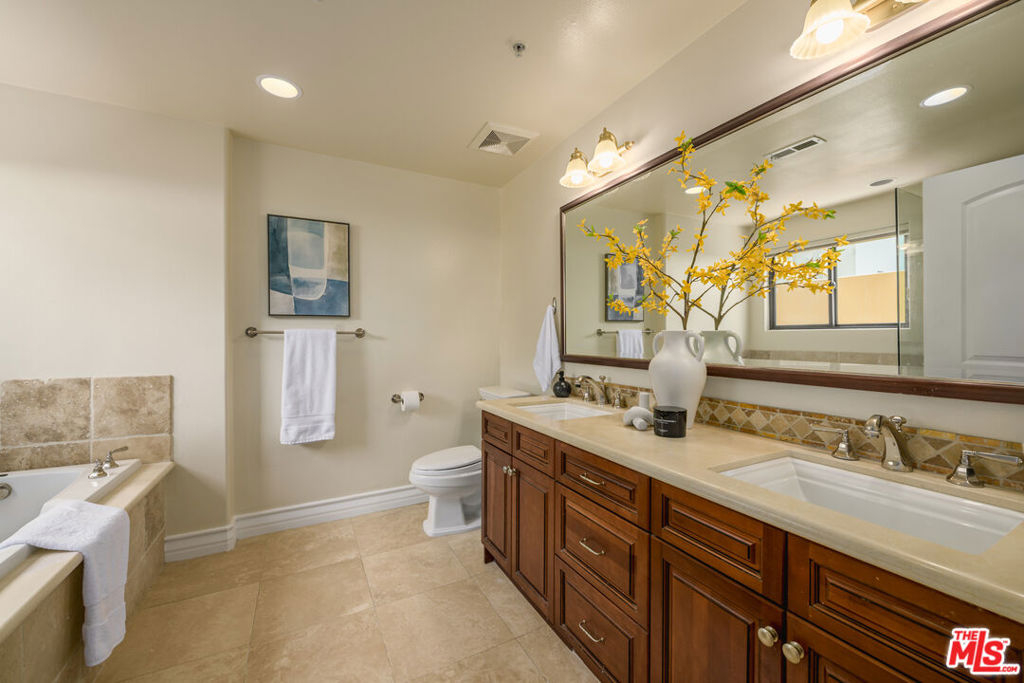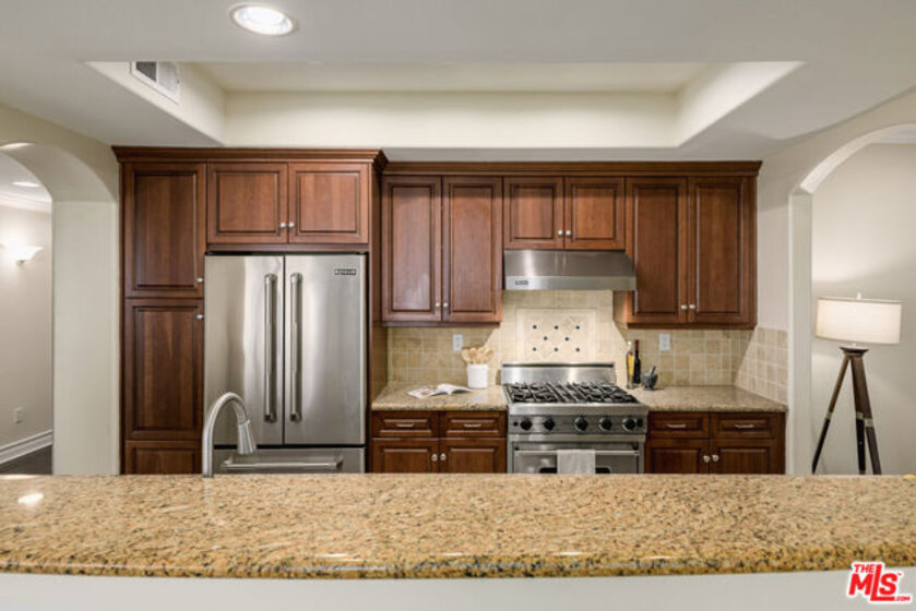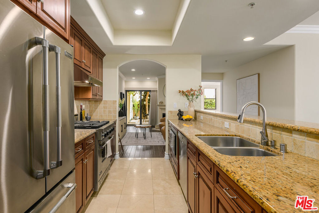 Located in a charming Tuscan-inspired building on one of Studio City's most sought-after tree-lined streets, this spacious single-level corner condo sits just steps from trendy restaurants, boutique shops, the Studio City Farmers Market, and all the vibrant conveniences of Ventura Boulevard. Featuring approximately 1,500 sq. ft. of living space, this unit offers an open floor plan with high ceilings, two bedrooms, 2.5 bathrooms, and two separate living areas, one complete with a cozy fireplace. The gourmet kitchen showcases granite countertops, premium stainless-steel appliances, and beautiful wood flooring that flows throughout the condo. The primary suite includes lush carpeting, a large walk-in closet, and a luxurious ensuite bathroom with a dual vanity, separate shower, and soaking tub. Additional highlights include in-unit laundry, a charming private patio, and convenient access to the building's amenities, which include gym, rec room, and beautifully manicured courtyard. The unit is located within a secure-access building and includes two parking spaces in a gated, covered garage, along with designated guest parking for visitors. The building also has charging stations in the garage for residents. Perfectly positioned for easy commuting, the building is just minutes from Laurel Canyon for quick access to West Hollywood and about five minutes to the 101 freeway, connecting you effortlessly with the entirety of LA.