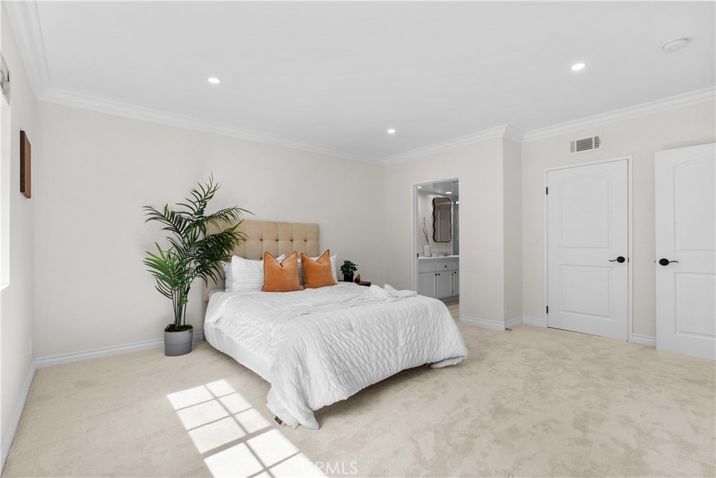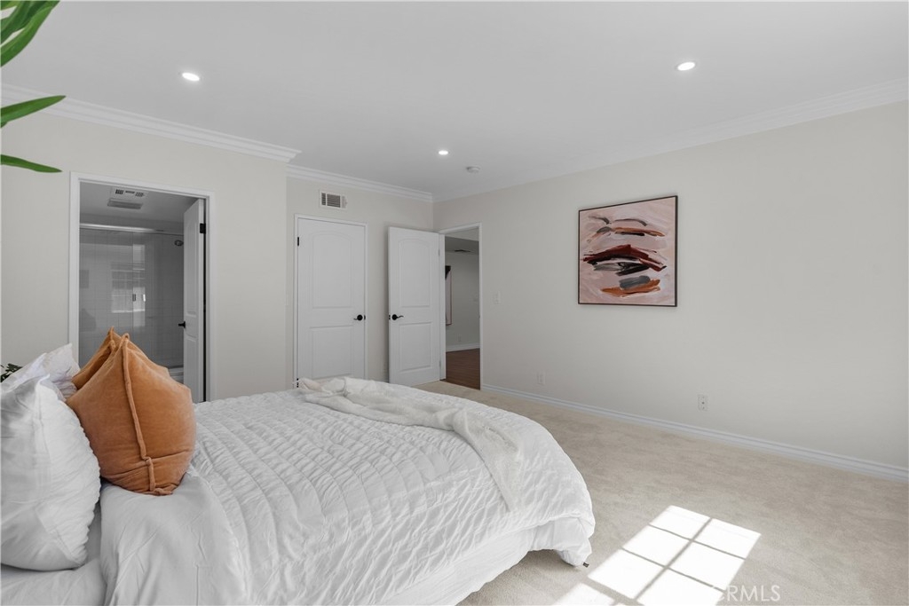 Top floor unit with 2 bedrooms and 2 bathrooms and 1151 square feet!! Located in the heart of Studio City, this condo exudes elegance, offering an unparalleled living experience. As you step into this beautiful home with updated recessed lighting, fresh painted walls, you are greeted by an open and airy floor plan with new plush carpeting, and laminate flooring, that seamlessly integrates style and functionality. The spacious living area features large windows that flood the space with plenty of afternoon sunlight, creating a warm and inviting atmosphere. The kitchen is a dream, brand new dishwasher, sleek countertops, and ample storage space, perfect for entertaining guests or enjoying a quiet meal at home. DUAL Primary suites with walk-in closets, a true retreat, and an ensuite bathroom. The bathroom is equipped with a large vanity and a tub. Additional highlights of this home include in-unit laundry, central air conditioning, and secure underground parking. The building is gated with security cameras, and plenty of guest parking. HOA dues include earthquake insurance. Located in one of the most desirable neighborhoods, this residence is just moments away from the vibrant Ventura Boulevard, where you can indulge in a variety of dining, shopping, and entertainment options. The building itself offers a range of amenities, including a sparkling pool, and meticulously maintained communal areas, enhancing your living experience!