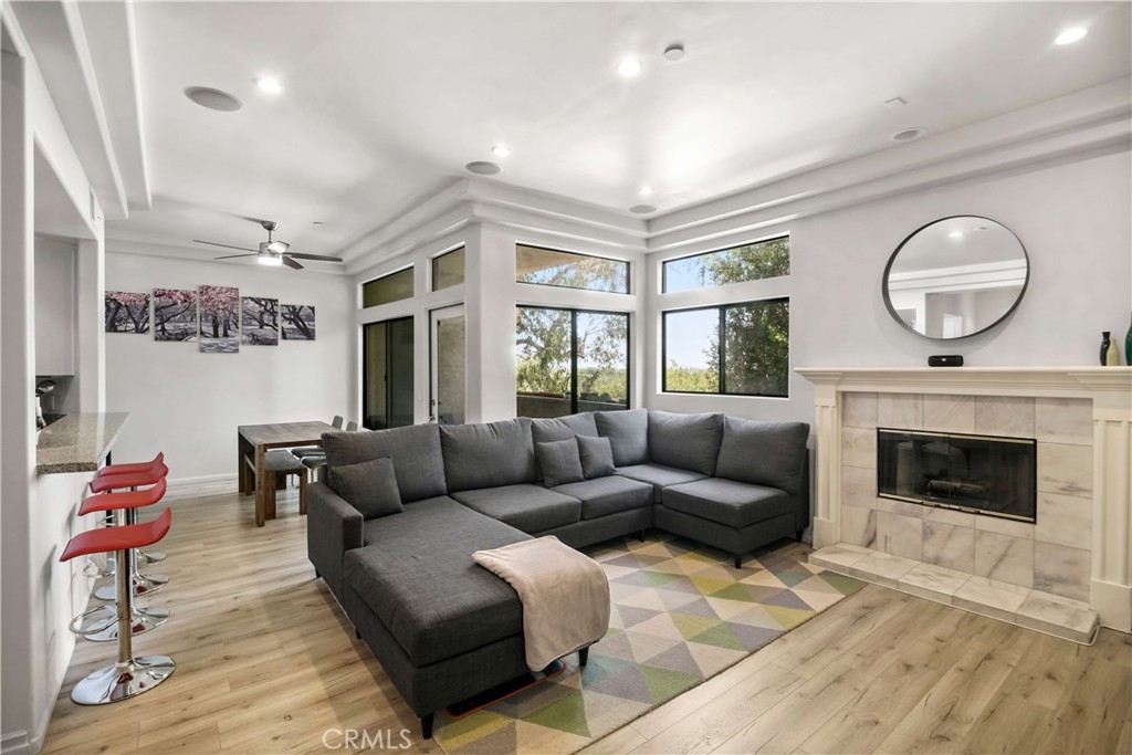 Luxurious, upscale, south of the Boulevard, 3-level townhouse with unobstructed valley views from a variety of different outdoor patios - including private rooftop. Tastefully designed floorpan first takes you through the spacious foyer leading you to a gourmet kitchen featuring a breakfast bar, granite countertops, open concept over-looking the dining area easing your way to your outdoor patio. Enjoy the cozy fireplace in the adjoined living room with oversized windows capturing the tree-lined, mountain scape. Side-by-side laundry area conveniently located just off the kitchen. Natural light pours through this beautifully maintained townhome. Both upstairs bedrooms have their own ensuite full bath. There are 2 closets in the owner's bedroom, one of which a walk-in closet. There is ample storage within the unit, 2 assigned parking spaces with additional guest spots in gated, secured subterranean parking garage. The walkability factor is 2nd to none...a few doors down from the esteemed Carpenter Community Charter Elementary School, Studio City's Farmer's Market, Fryman Cyn Hiking Trails, CBS Radford Studios, Trader Joe's, and so much more!