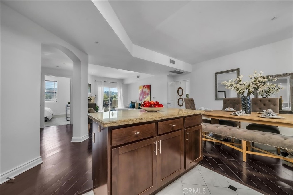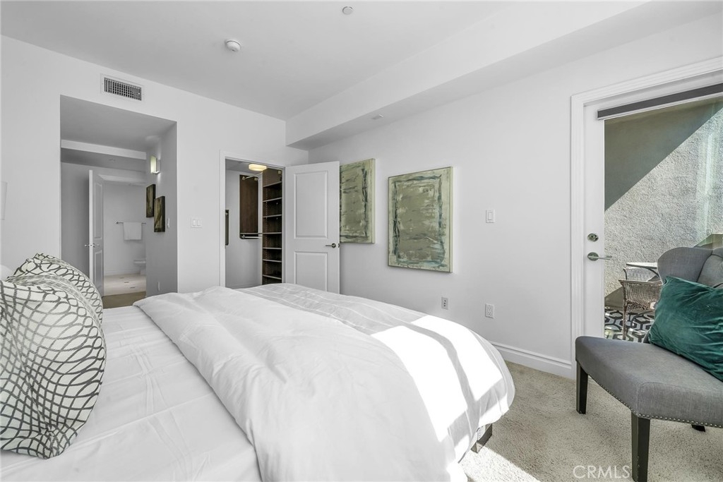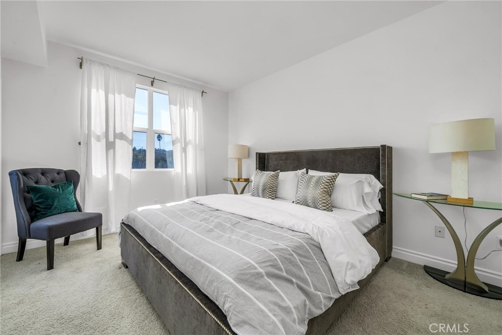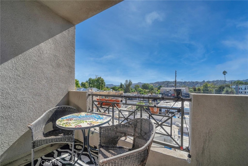 Welcome home to this fabulous light and bright Lumiere penthouse in Studio City! Situated away from Whitsett Avenue and facing the Studio City hills, guests are greeted by an inviting entry hall that opens to the spacious Entertainer’s floorplan. Gleaming hardwood floors and recessed lighting adorn this sprawling great room with a corner fireplace and sliding doors to a private patio with wonderful south-facing views. The gourmet Chef’s kitchen showcases granite counters, stainless steel appliances including a brand new refrigerator, rich wood cabinetry, an island with breakfast bar, and an adjacent formal dining area. The spacious primary suite enjoys direct access to the balcony, southern-facing views, dual closets including a large walk-in, and a spa-like primary bath with Carerra marble everything; dual vanity, glass shower, and soaking tub. The generously sized guest bedroom and bath are located on the other side of the living space and primary suite giving full and complete privacy for both bedrooms. The large guestroom has an oversized picture window, 2 closets, and an adjacent bath. Additional conveniences include an in-home washer & dryer, two tandem parking spaces and off-street guest parking in the subterranean gated garage. This premiere building is meticulously maintained, enjoying an impressive gated entrance, center courtyard with fireplace, tranquil zen garden, and well-appointed fitness center. Enjoy everything Studio City has to offer, located near Ventura Boulevard’s fine dining, shopping, and more!