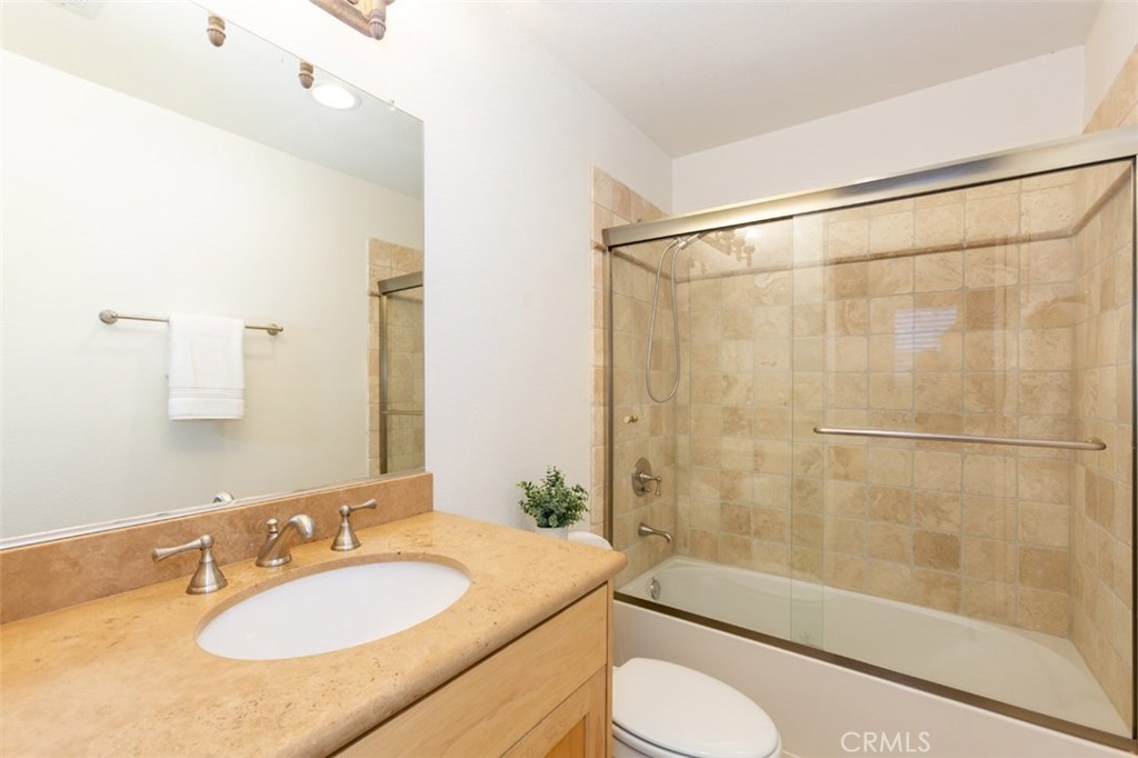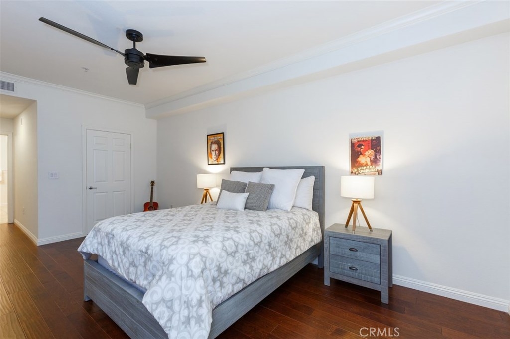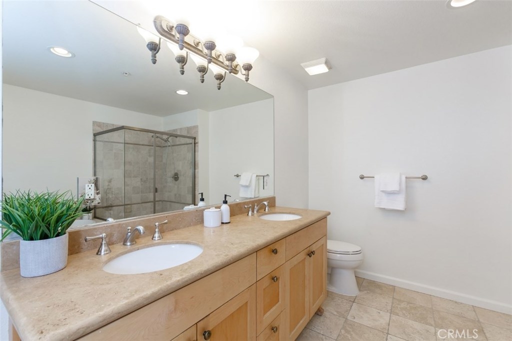 Immaculate two bedroom two and a half bathroom condo in a highly desirable Studio City location. An inviting formal entry opens to the expansive living room with warm gleaming wood floors, a cozy gas fireplace and large private balcony. Relax in this ideal open concept layout which offers a breakfast bar that opens seamlessly into the family room and an elegant separate dining area. Recently refreshed, the stylish kitchen boasts granite countertops, stainless steel appliances and ample storage. Two en suite bedrooms are situated on opposite sides of the living space for the utmost privacy. Enjoy five star amenities at home in your spacious spa-like main bathroom includes travertine floors, dual sinks, a glass enclosed shower and an oversized soaking tub. Built in 2004, this controlled access building offers a fitness room. This unit is not located on the first floor. Other features include, a newer air conditioner installed in 2018, recessed lighting throughout the living areas, main bedroom walk-in closet, custom shutters, and a washer/dryer located in the hall closet. Only blocks away from Ventura Blvd. retail and dining and the soon to open Erewhon.