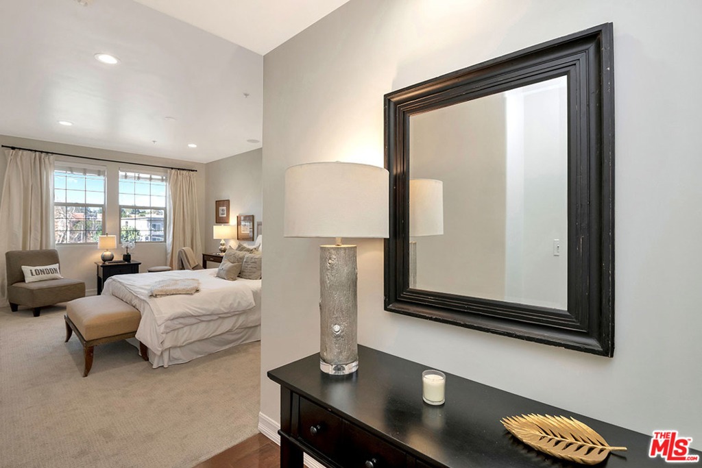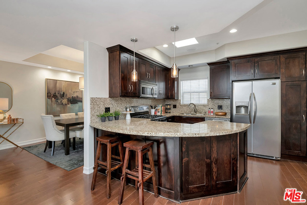 PRIME STUDIO CITY PENTHOUSE! This remodeled light and bright penthouse unit consists of 2 bed, 2.5 bath, 1522sqft living featuring hardwood floors, brand new carpet with high ceilings! The recently remodeled custom kitchen has solid granite counter tops and backsplash ,hi-quality full backed cabinets with dove-tailed pull-out drawers and Lazy Susan throughout for easy access, stainless steel appliances, and a breakfast bar that opens up to the dining room/living room. The spacious living room boasts a lovely fireplace and double doors that open to the private balcony with views. The two large en-suite bedrooms are on opposite ends of the unit, providing privacy. Main bedroom suite is spacious with a large walk-in closet, dual sinks, large soaking tub, new luxury rain shower, new light fixture, and oversized glass enclosed shower. Other attributes include in-unit laundry, high ceilings, new light fixtures, new interior paint, skylights, new LED recessed lighting, storage shed, built-in closet organizer, custom window treatments and new HVAC system. Wired for Home-Audio,Theatre & Automation and fast internet connection. The building has a secured entrance, beautiful courtyard & community gym. Conveniently located to the 101 freeway, Beeman Park, and moments from Ventura Blvd, Studio City Farmer's Market, Tujunga Village, CBS Radford and more!!