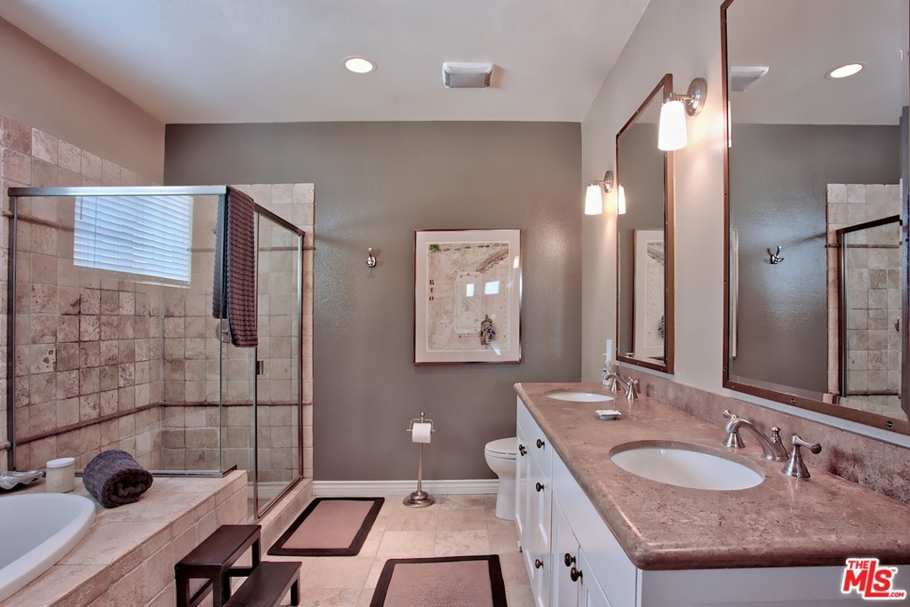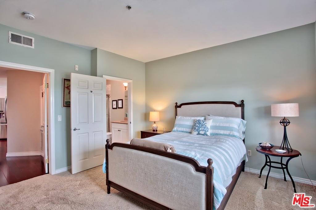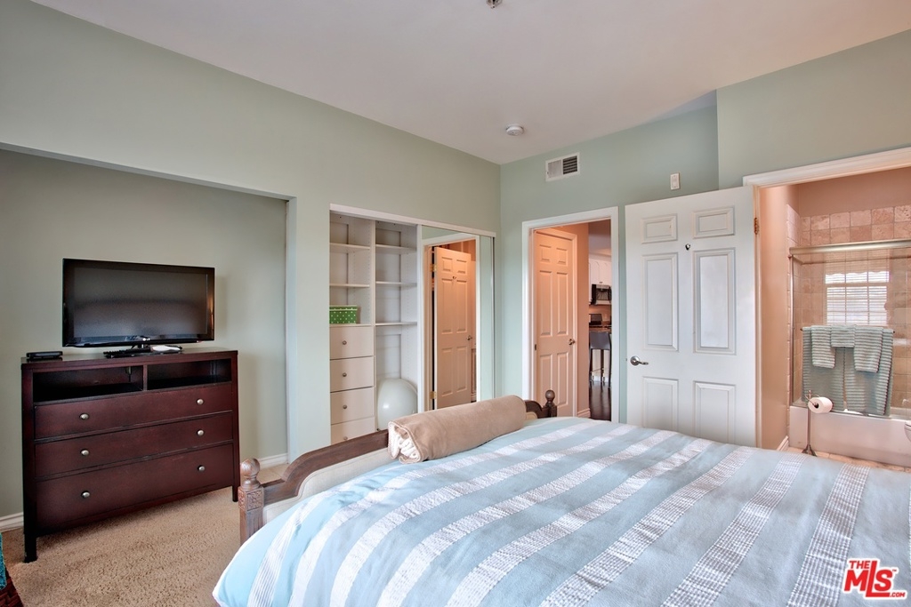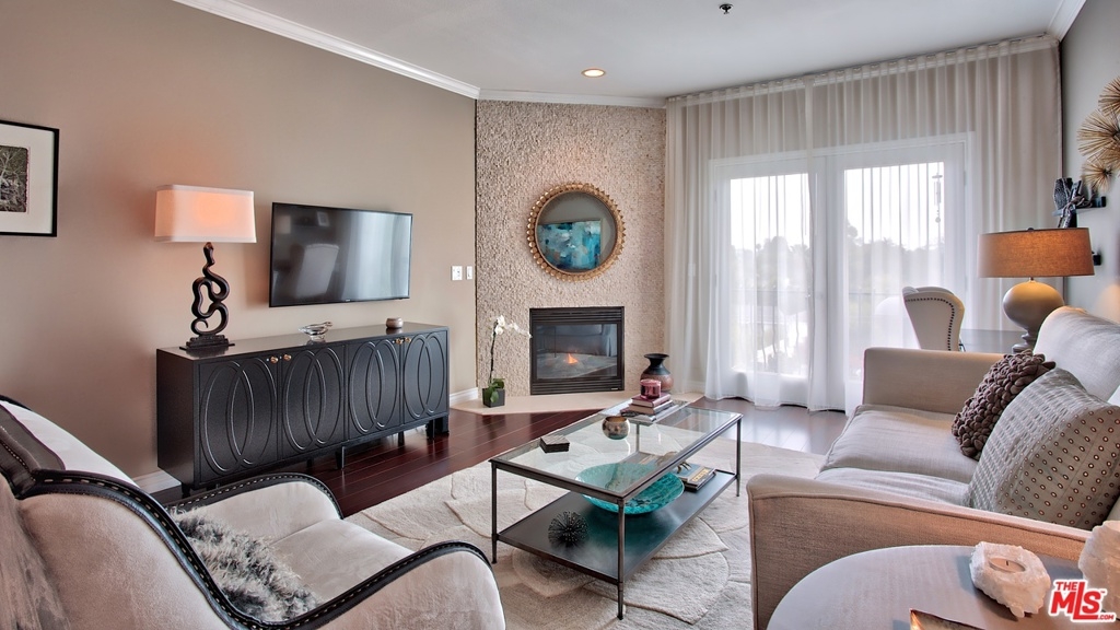 SUPERIOR LOCATION. BEAUTIFUL TOP FLOOR CORNER CONDO FACING THE MOUNTAINS. GORGEOUS VIEWS!!! QUIET!!! BACK OF THE BUILDING. Sit on your balcony & enjoy the sunset. This one level open floor plan features a large en suite master bedroom w/ a HUGE walk in closet & bathroom w/ 2 vanity sinks, large tub & separate walk in shower. The living room has a warming fireplace. The kitchen w/breakfast bar has stainless appliances, granite counter top & is open to the full sit down dining room w/sexy chandelier. Rich hardwood floors. Stackable LG full size Washer/Dryer. Each bedroom has its own bath and is located on separate sides of the main living area, creating complete privacy. Lovely powder room for guests. Excellent storage. Guest parking is available under the secure parking garage. 2 tandem assigned parking spaces. Community gym & secure entry with elevator. Live in or use as rental income property. Studio close & a wonderful area for walking, close to hiking trails and best schools.