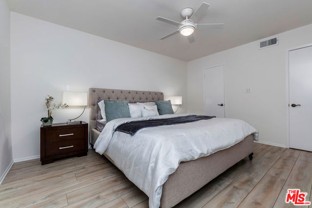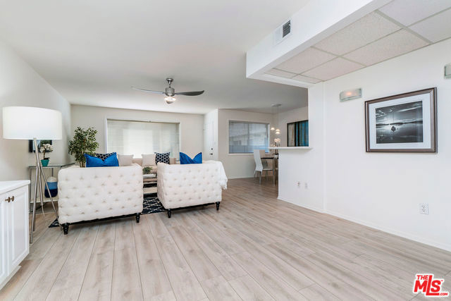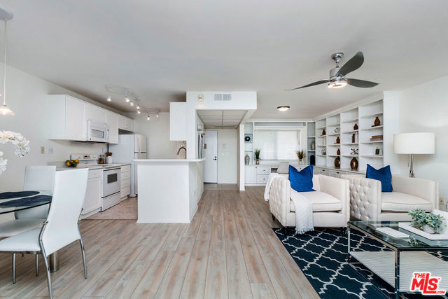 Newly refreshed interior finishes grace this open and spacious condo residence in a prime Studio City/ Sherman Oaks location! Moments away from Ventura Blvd, world class dining, shopping, entertainment/ attractions, and excellent schools, this expansive 1-bedroom unit includes a large den area with built-in shelving and desk for enhanced functionality, as well as new paint and flooring. The light and bright den and living room spaces flow effortlessly into the dining area and kitchen. Additional cabinet storage and a full bath reside off the hallway, as does the private master bedroom with walk-in closet. Other features include a fenced patio/ deck area accessible off the living room, TWO parking spaces, and a dedicated storage space in the garage! Well-maintained building with EQ insurance and a fabulous pool and patio area.