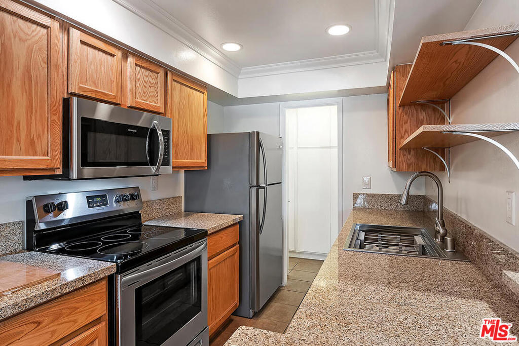 Why rent when you can own this wonderful home? Start building equity in this fantastic one level, one bedroom plus bonus room condo in prime Studio City! Peaceful unit, located in back of the building with residential views. This cheerful, bright unit features a sharp new redone kitchen; granite countertops, all new stainless steel appliances, farmhouse sink and high-end laminate flooring. The large bedroom includes a full-size walk-in closet and new plush carpet. Functional bonus room is highlighted with glass block to allow some natural light in. Perfect for a home office, study or kids playroom. Living room/dining area have open floor plan. Private quiet balcony. Unit is close proximity to the pool, sauna and garage w/2 tandem parking spaces and additional private storage. Community laundry. Beautifully maintained complex with pool, sauna and outdoor recreation areas to relax in and enjoy the California sunshine. HOA has earthquake insurance. Just a couple blocks from Beeman Park and Ventura Blvds shops, restaurants and entertainment venues. Welcome home!