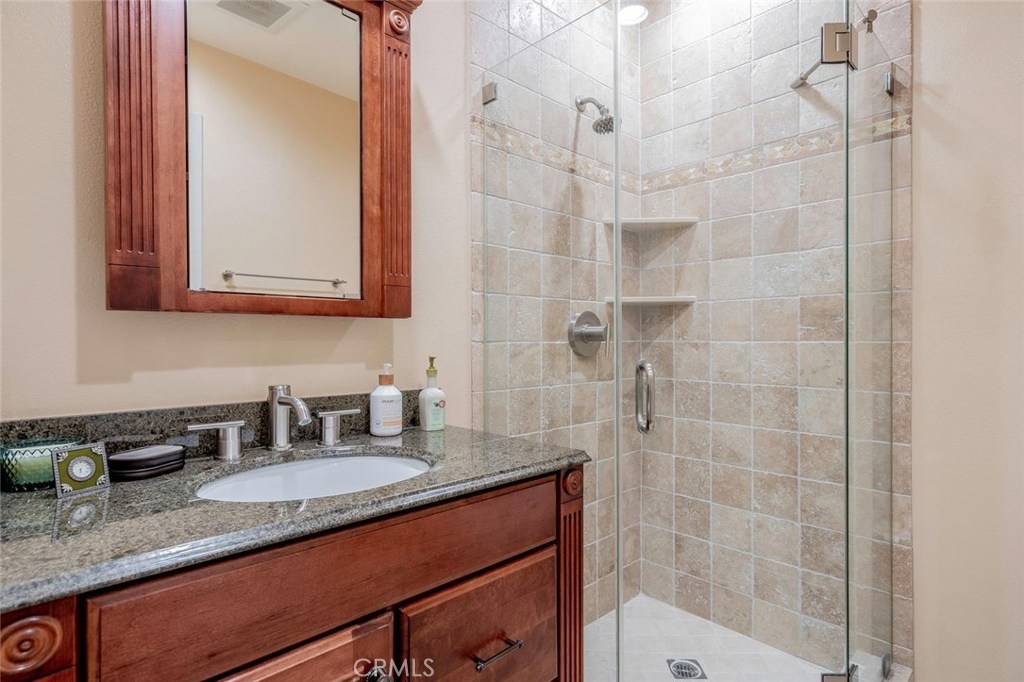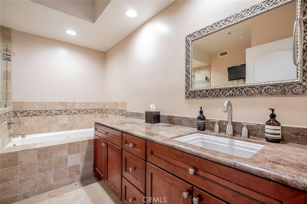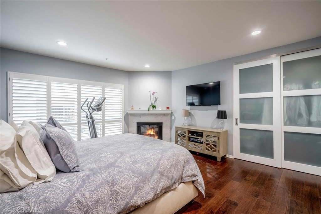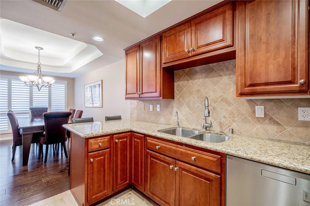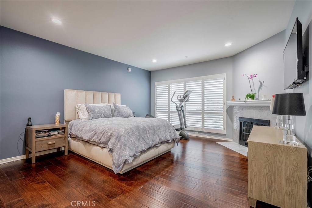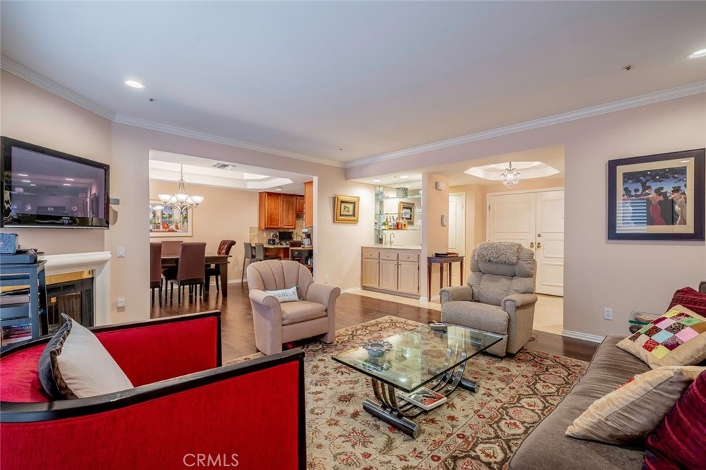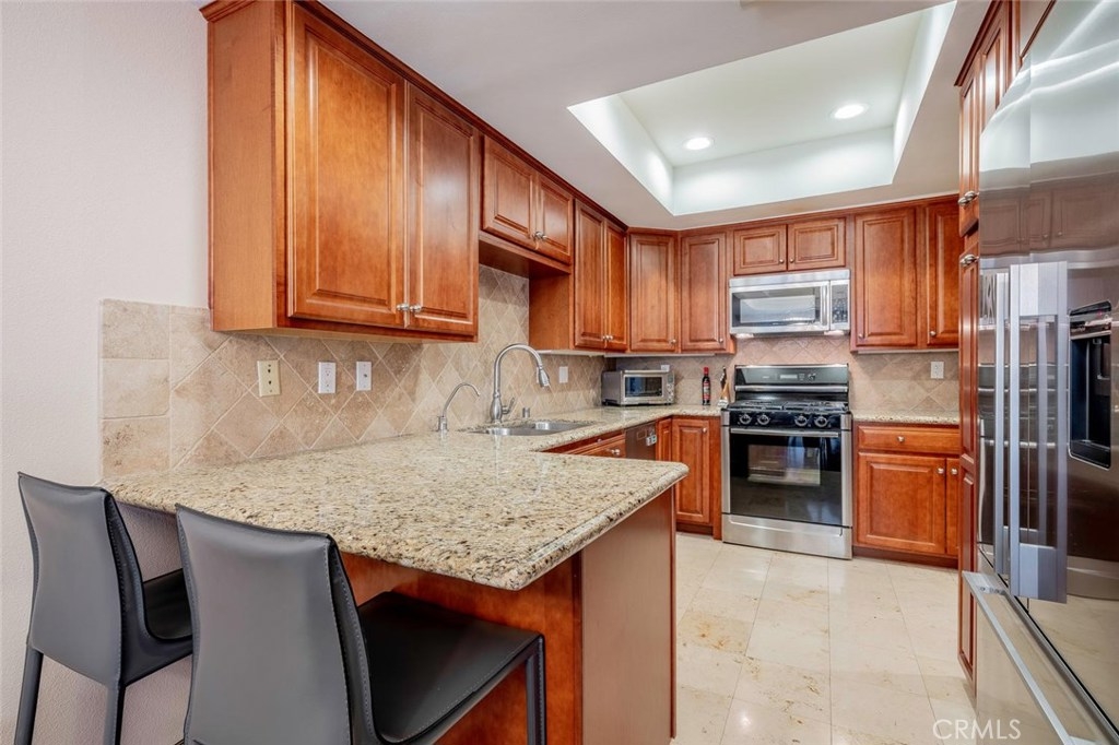 Fantastic single-level 2 bed 2.5 bath turnkey condominium in a well-maintained building, adjacent to the newly upgraded river walk for jogging and dog walks, and within walking distance to great restaurants and shops along Ventura Blvd! A double-door limestone foyer welcomes you to this stunning home with 1460 square feet and features including wood flooring, an updated kitchen with stone counter tops, custom cabinets with pull-outs, top of the line stainless steel appliances and a convenient breakfast bar. There is a large dining room adjacent to the kitchen that flows to the living area, creating an ideal space for entertaining. The light & bright living room boasts crown molding, a fireplace, and a mirrored wet bar. The large master suite has a fireplace, and the en-suite bathroom is complete with a spa tub, separate shower and spacious vanity. There is an enormous walk-in master closet (with pull-outs, drawers and shelves). The guest bedroom includes a private remodeled bathroom. Incredible storage throughout! Additional features include recessed lighting on dimmers, plantation shutters, 2 fireplaces and side by side laundry. 2 assigned parking spots plus guest parking in secured garage. Earthquake insurance included. Located in the Dixie Canyon school district.