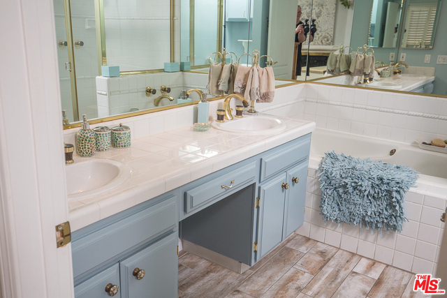 Studio City 2 bedroom, 2.5 bath condo. Second floor back unit with open view over the tree/rooftops. Full-length balcony across the living room and second bedroom provides abundant natural light. Only one shared wall. A jogger and dog lover's dream location, situated 1/2 block from a completed 1.6 mile section of the River Walk, and 1/2 block from Ventura Boulevard, providing easy access to restaurants and shopping. Secure building entry, gated parking garage, two spaces with unit, plus guest parking in bldg. Additional storage closet just outside unit. Open floor plan features hardwood floors, French doors, two fireplaces, crown molding, recessed lighting, an accent wall, and a special finish in the guest bath of golden Venetian plaster. The kitchen features new quartz countertop and bubbly, stylish backsplash. Master features plantation shutters and walk-in closet. En suite has spa tub and dual sinks.