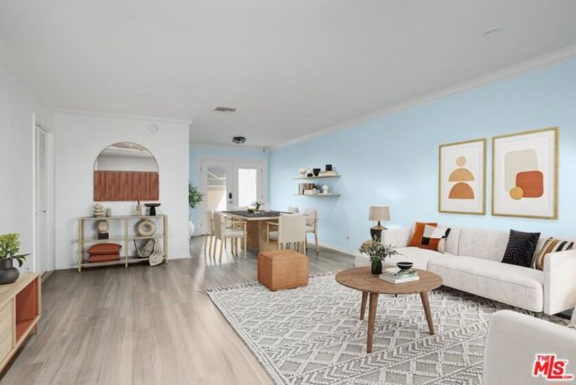 Wonderful townhouse in the desirable Studio City Villas. This lovely home features two generously sized bedrooms and a full bath upstairs, as well as a laundry closet with washer and dryer included. The main level boasts a spacious living room and dining area. The upgraded kitchen includes new quartz countertops, all major appliances (refrigerator, oven, stovetop, and microwave), a reverse osmosis water filter system, and a new, premium three-level dishwasher. Off the entryway you will find a powder room with custom tilework and a large retro-style porcelain sink. Throughout the home you will enjoy new luxury vinyl plank flooring. At the rear of the home, French doors open to a patio with a retractable awning. Sellers are including their stainless steel barbecue grill, which is connected to an outdoor gas line, eliminating the need to purchase and refill propane tanks. The unit's dedicated parking space and storage cabinets are in the carport directly behind the patio's back gate. Upstairs and down you will find plenty of closet space. The dual pane windows have custom fitted blinds. The complex amenities include a large, heated swimming pool, relaxing spa, and over a dozen guest parking spaces. HOA monthly dues cover water, trash/sewer, building insurance, earthquake insurance, pool/spa, grounds and common area maintenance. Conveniently located near local favorites such as Aroma Cafe, The Front Yard, Tujunga Village, and the scenic Woodbridge Park. Plus, you're perfectly positioned for easy access to Hollywood-Burbank Airport and Universal Studios. The current owners have loved calling Studio City Villas home but have had to relocate for work, so here is YOUR opportunity to fall in love with Studio City Living.
