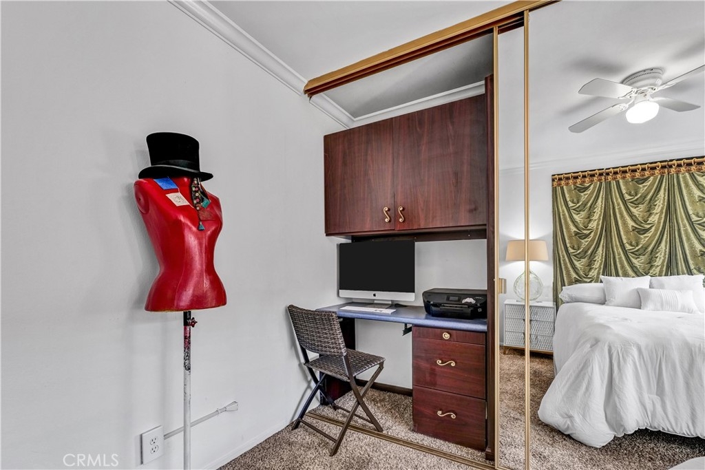 An amazing mid-century home with an incredible artistic ambiance in one of L.As' last remaining garden communities. Studio City Villas is a gated resort-style property on apprx. three acres, featuring story-book walkways shaded by mature trees & lush landscaping, a sparkling pool and spa. Built in the 1960's the complex dwells in the prestigious Woodbridge Park neighborhood right on the border between Studio City and Toluca Lake. Nestled a stone throw to the quaint shops and restaurants of hip & trendy Tujunga Village, and minutes to landmarks such as Universal Studio's Theme Park & City Walk to the east, Radford Studio Center (former CBS) to the west and Toluca Lake's Golf Course & country club to the north. We’re a quick hop to the 101, 134, and 170 freeways, just minutes to Disney, Warner Bros and Burbank’s Studios. This cozy & artistically decorated 1 BR + 1 BA condo located on the ground floor and quietly situated in the rear of the complex, providing front-door drive-up access for easy unloading and deliveries. Enjoy tree-lined views that offer a tranquil respite from the cityscape, and a large, private enclosed patio, perfect for indoor -outdoor living & entertaining. Some of the interior nuggets are classic crown molding all around that complements any decor. The bedroom features, custom built-ins in the wall-to-wall closet, a home-office nook perfect for remote work, study or your personal art-studio – with ample natural light. The galley kitchen features an open bar-counter, offering both light and accessibility, along with bamboo flooring. Energy-efficient Milgard windows throughout provide not only impact-resistant glass but also reduce energy costs with UV protection and insulation. A rare find! Utterly artistic!