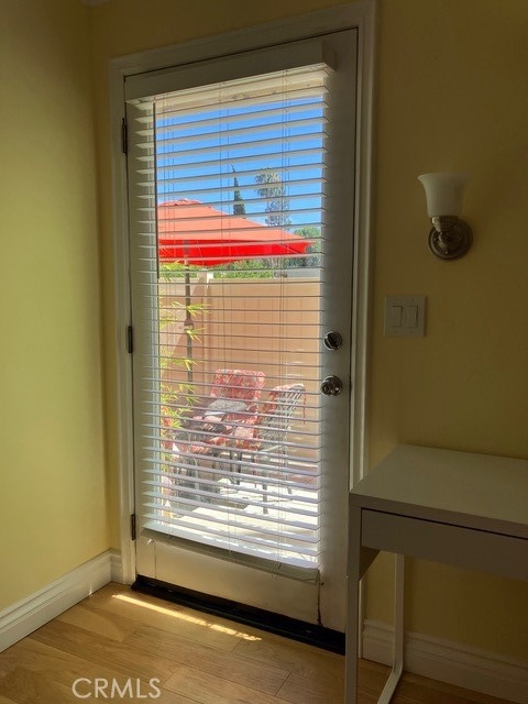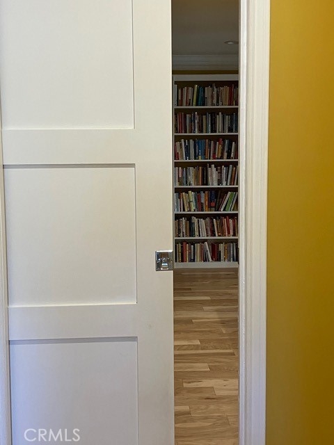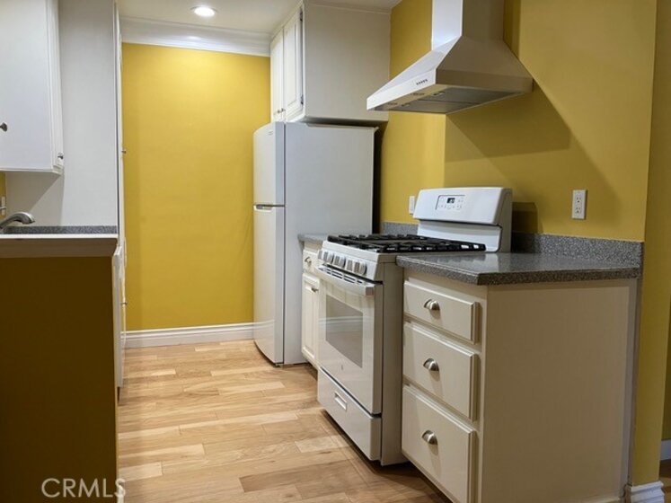 Welcome to this iconic mid-century complex on 2.9 acres of tree-studded property with a pool and spa, and plenty of above-ground parking for residents and guests. The property is walking distance to the famous Aroma Tea & Coffee restaurant in Tujunga Village and The Garland Hotel, where you can bring your furry friends for outside dining. This unit is on the first floor and is highly decorated and move-in ready. Some of the features include hickory engineered wood flooring; completely remodeled bathroom in art deco black & white, including new valves and cartridges; a Daikin mini-split system; newer range and dishwasher; new solid-wood bedroom and bathroom doors, and pocket door with new slider system; famous Beverly Hills Hotel, Martinique wallpaper; new paint throughout; new baseboards; floor-to-ceiling, built-in bookcase; top down/bottom up shades in living, dining & bedroom; new water heater, all done since 2023. Additionally, this home has recessed lighting throughout; newer electrical sub-panel; triple crown moulding; and vinyl Milgard windows, including a garden window in the kitchen. The new owner will enjoy an ample patio with small area of astro-turf and will inherit 6 golden bamboo plants (if they choose) and a wood storage shed. There is a hose and bib inside the patio and backdoor access from the bedroom. There is also easy access to the designated tandem parking spaces for unloading groceries through the patio entrance and a peek-a-boo view of the east Hollywood Hills, which is quite lovely at night. This property is also conveniently located to several freeways and easy access to Hollywood, downtown, Dodger Stadium, and Universal Studios. Listing broker is also the property owner.