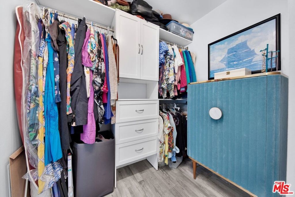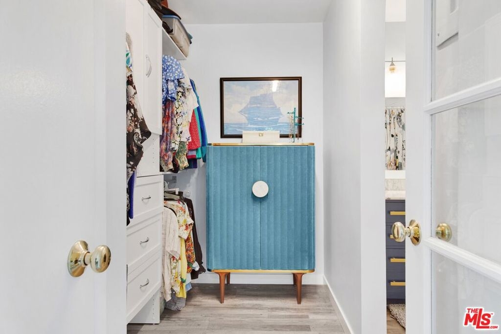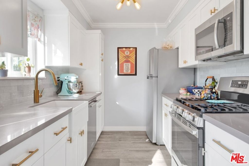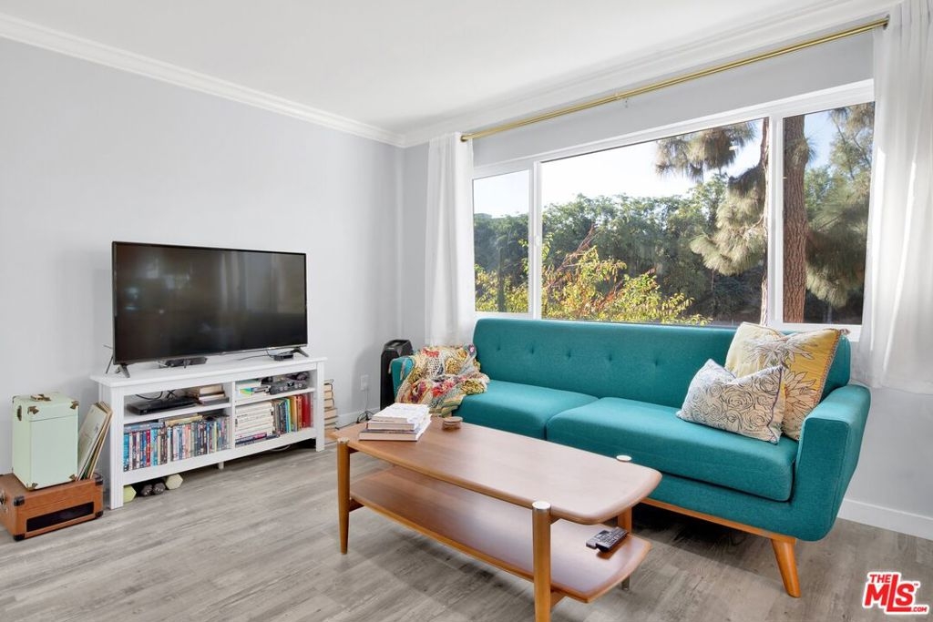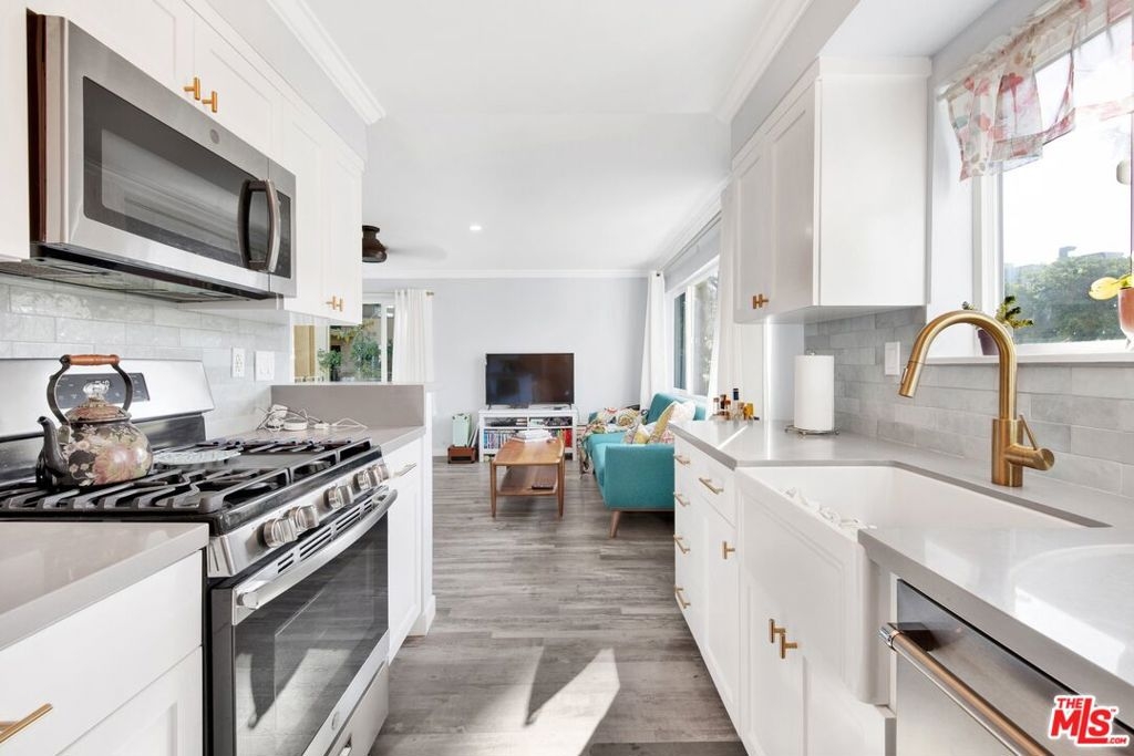 This beautifully remodeled studio condo is located in a quiet community right on the border of Studio City, North Hollywood, and Toluca Lake, just a short drive from Universal City and Hollywood. The condo features stunning green-space views of the LA River, and has been completely updated with a new kitchen, bathroom, luxury vinyl plank flooring, low e3 triple-pane windows, wifi-enabled wall AC unit, and paint. The open floor plan makes the space feel bright and airy, and the semi-private balcony is the perfect place to relax and enjoy the views. The kitchen is fully equipped with quartz countertops, blue pastel subway tile backsplashes, stainless steel appliances, and the bathroom features a large subway tile walk-in shower. You'll have plenty of space for your wardrobe in the large, custom-built closet in the hall leading to the bathroom. The condo also comes with one assigned semi-private garage space with additional storage cabinets. This community offers a variety of amenities, including a swimming pool & spa and laundry facilities (note: per seller, the HOA does allow for in-unit laundry installation). HOA is not FHA/VA approved, but Seller is open to exploring spot approval options with FHA/VA buyers. See the last three pictures for a design concept to wall off a bedroom if a 1 bedroom layout is preferred to the existing studio layout.