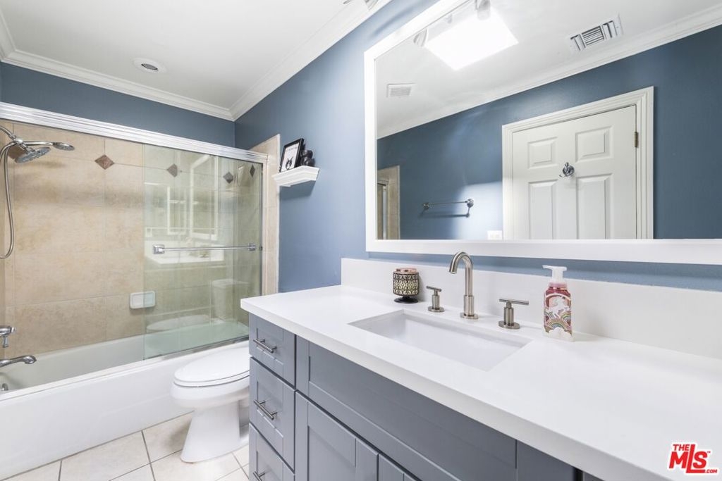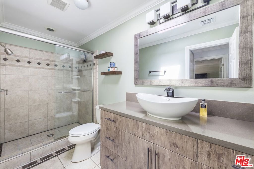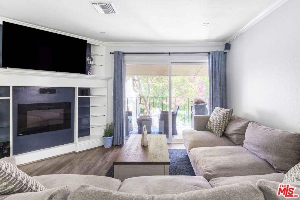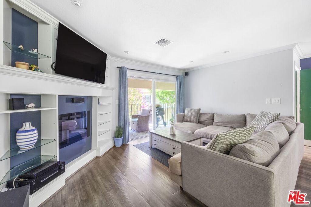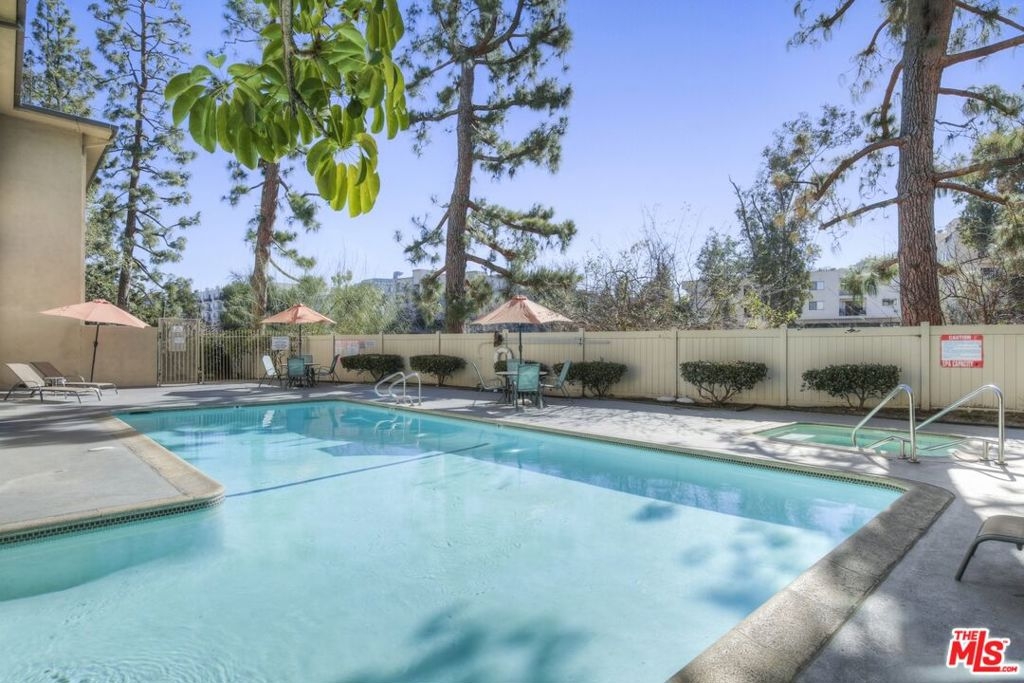 Fantastic condominium at the classic Mid Century style Studio City Villas. One story, second floor unit located at the very back of this lushly landscaped, quiet and serene gated garden community. Kitchen and bathrooms have been beautifully remodeled with taste and style. In unit laundry, newer flooring throughout. Spacious front balcony/terrace, perfect for al fresco dining or relaxing. Other highlights include newer central heat and air, high end kitchen appliances, well proportioned bedrooms and bathrooms, and tons of storage. Surround sound system, dual paned windows and newer roof. Included is one covered parking spot and additional storage locker. Sellers have rented and paid for two additional parking spots through October 2023. Huge pool, spa, and grassy dog area are a few steps away. Lots of guest parking too. HOA includes earthquake insurance, water and landscaping. Terrific location just moments away from Ventura Blvd, Tujunga Village, and all Studio City has to offer.