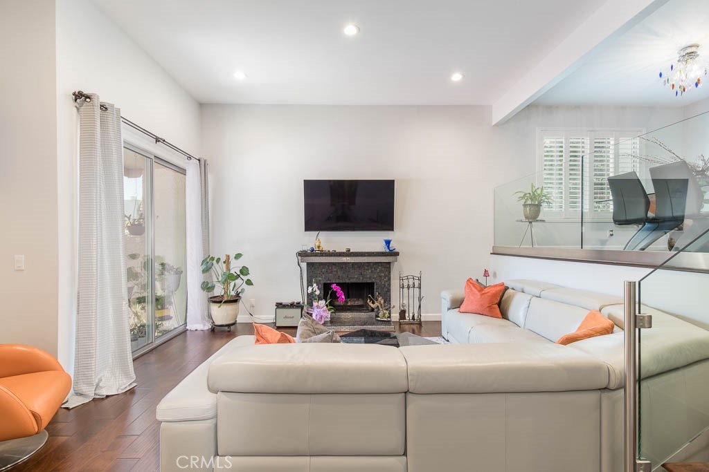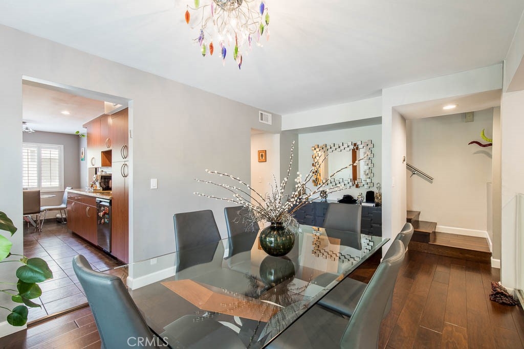 Studio village town home! Rarely do these large units come on the market. Convertible den could easily be converted back to 4th bedroom. Living room has high ceiling with wood burning fireplace & sliding glass doors opening to private bricked patio. Formal dining room overlooks living room which gives a wonderful "open" feel for entertaining. Kitchen with breakfast nook is off dining room and open to convertible den. Powder bath can be converted to a 3/4 bath and completes lower level. Upstairs there is a wonderful master suite with customized his and hers walk-in closets and private bath with double sinks. Two other bedrooms share a bathroom. Newer paint and hardwood floors throughout. Front windows are all double paned and most windows have plantation shutters. Private double attached garage with storage & laundry area completes this wonderful home. Complex has six pools, five spas and two tennis courts plus manicured lawns and areas of greenbelt throughout. It is within easy reach of Tujunga Village and Ventura Blvd. Close to Fryman Canyon for hiking, studios, and in Carpenter Elementary school district.